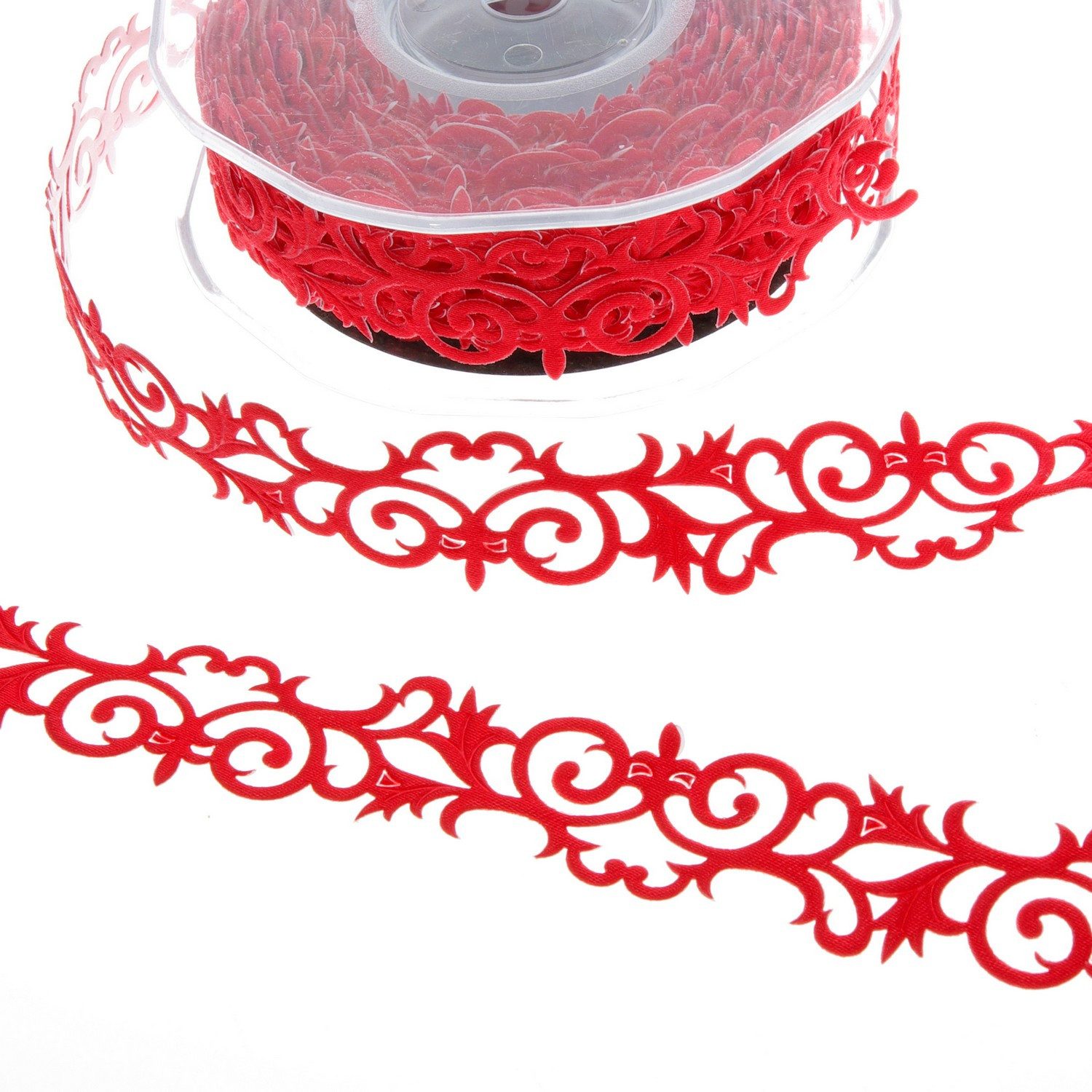 Mit dieser selbstklebenden Bordüre aus kunstvoll verschlungenen Ornamenten in Rot gestalten Sie ganz einfach geschmackvolle, individuelle Weihnachtskarten oder Tischkarten für die weihnachtliche Festtafel. Auch schlichte Geschenkverpackungen lassen sich mit der Bordüre schön verzieren. Jede Rolle hat 10 Yards, das entspricht ca. 9,3 Metern.