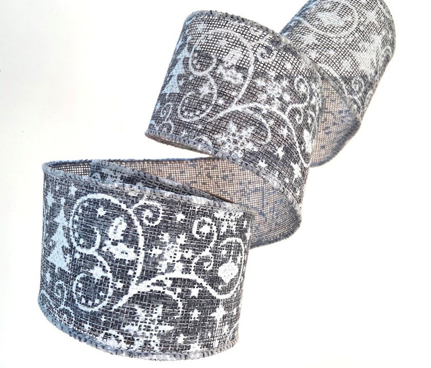Das Dekoband in Leinenoptik ist mit dem weihnachtlichen Motiv Stern & Ranke bedruckt. Die Kanten sind grau eingefasst und mit einem Draht versehen. Es ist ein rustikales, festes Dekoband und wirkt besonders gut im Adventskranz oder –gesteck.