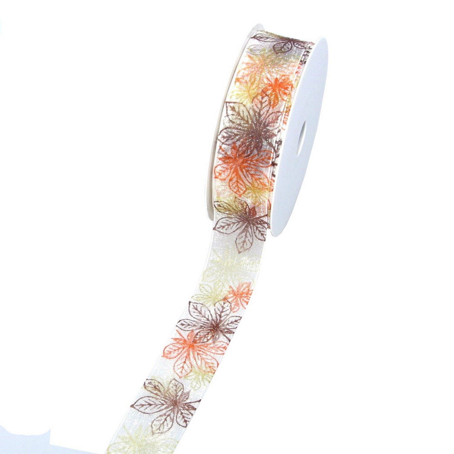Gestalten Sie Ihre Dekorationen stimmungsvoll und naturverbunden – mit diesem stilvollen Organzaband im herbstlichen Blätter-Design.