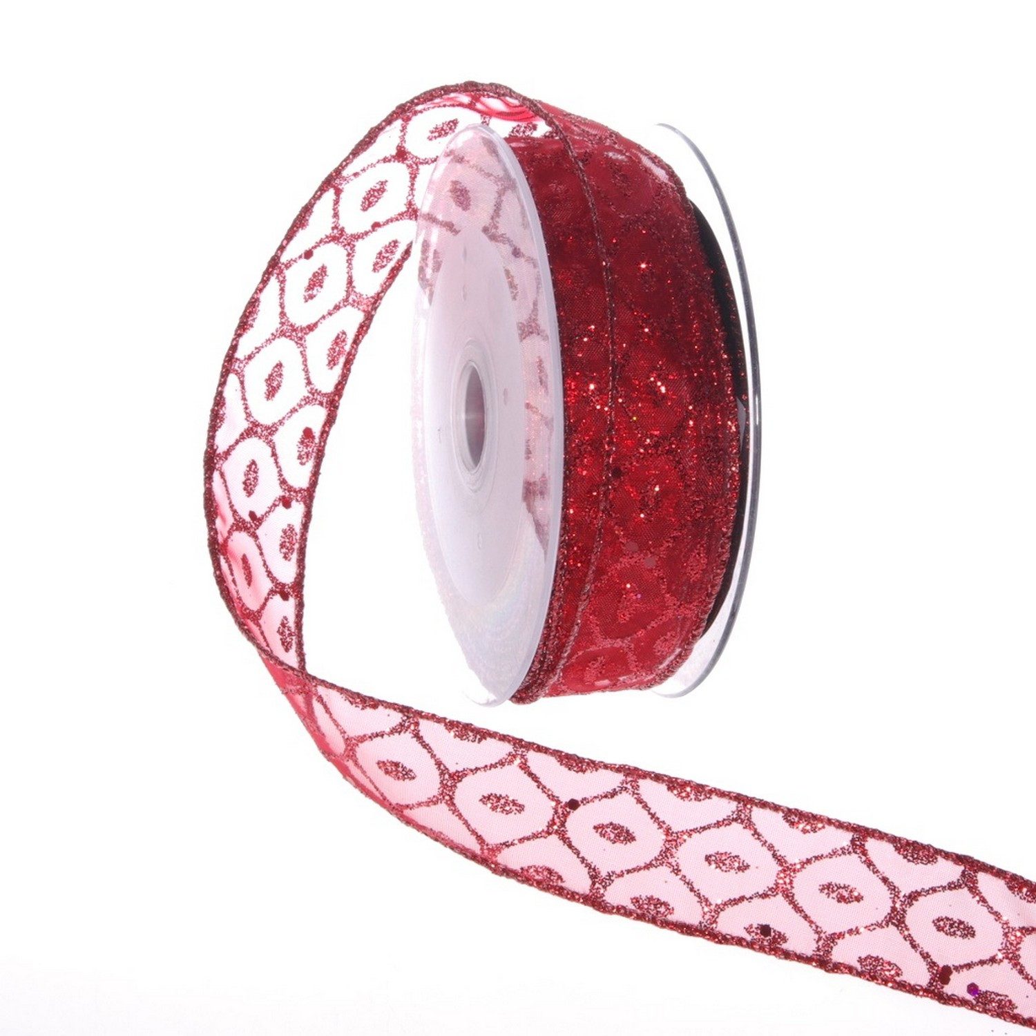 Setzen Sie festliche Akzente mit unserem Organzaband in Rot mit glitzerndem Waben-Druck. Das hochwertige Dekoband (25 mm Breite, 10 m Длина) überzeugt durch seine elegante Transparenz und die dezenten Glitzereffekte, die jede Weihnachtsdekoration in ein edles Highlight verwandeln.