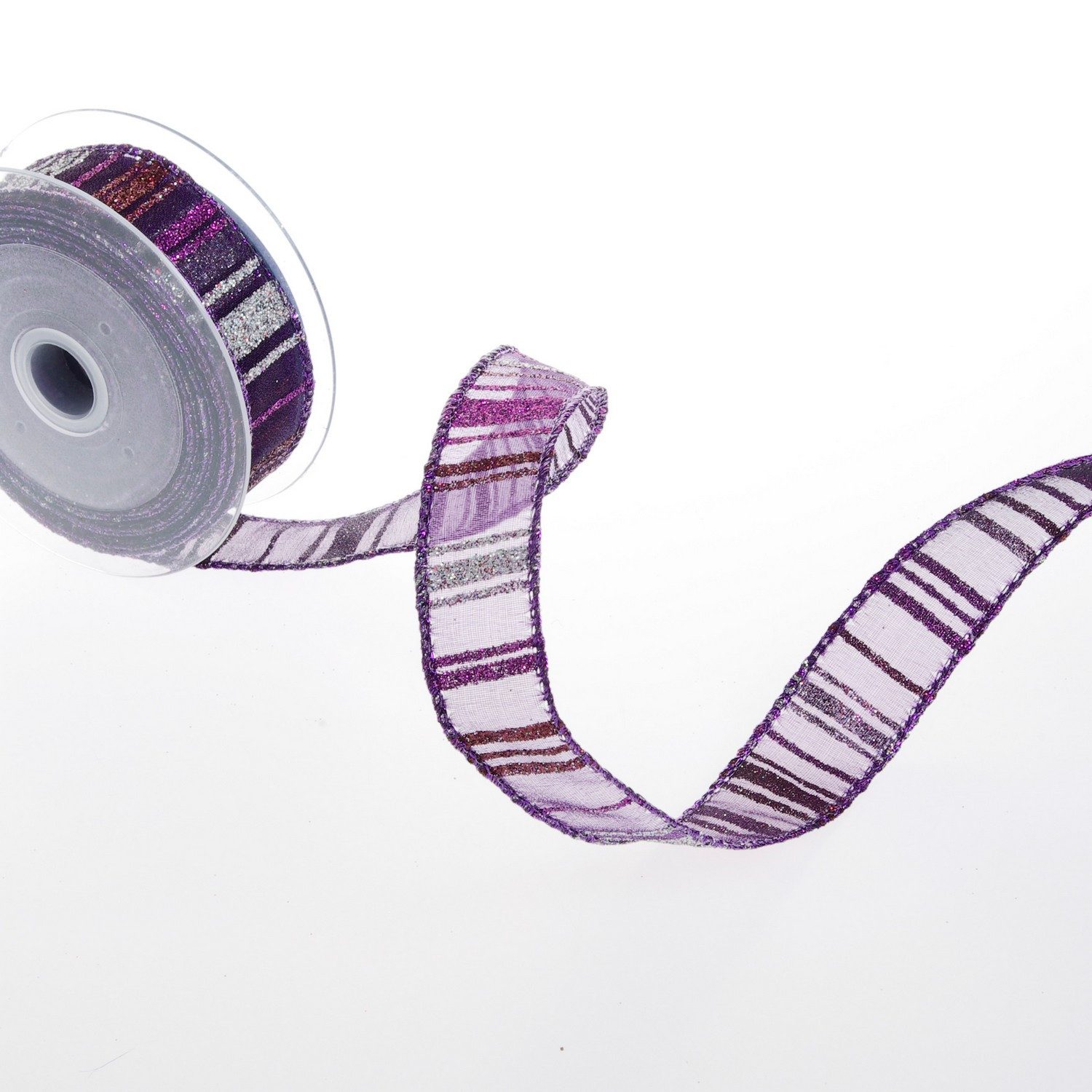 Edles Weihnachtsband: Lila Organza mit glitzernden Streifen in Lila, Silber & Gold
