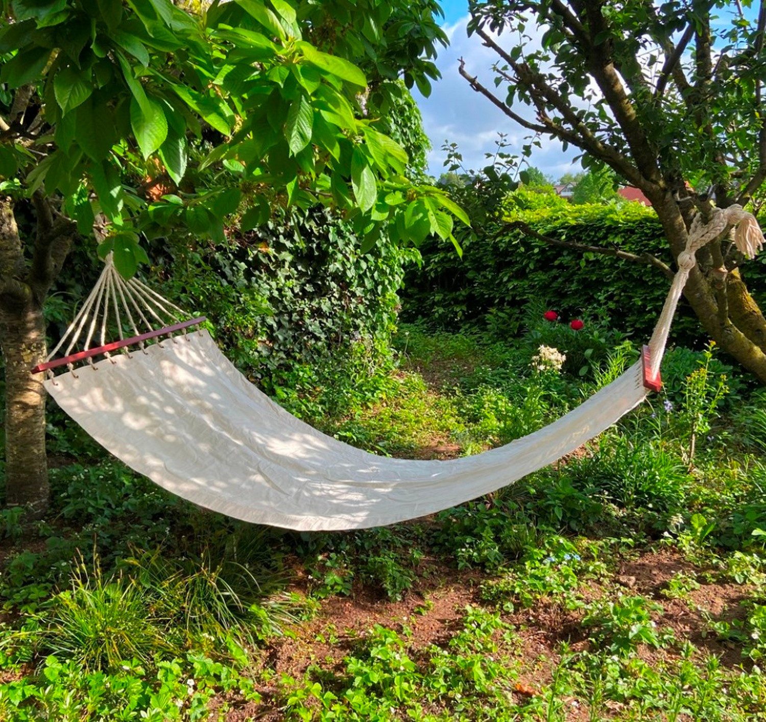 Eine gemütliche Stab-Hängematte aus Canvasbaumwolle - super zum Träumen unter Bäumen!