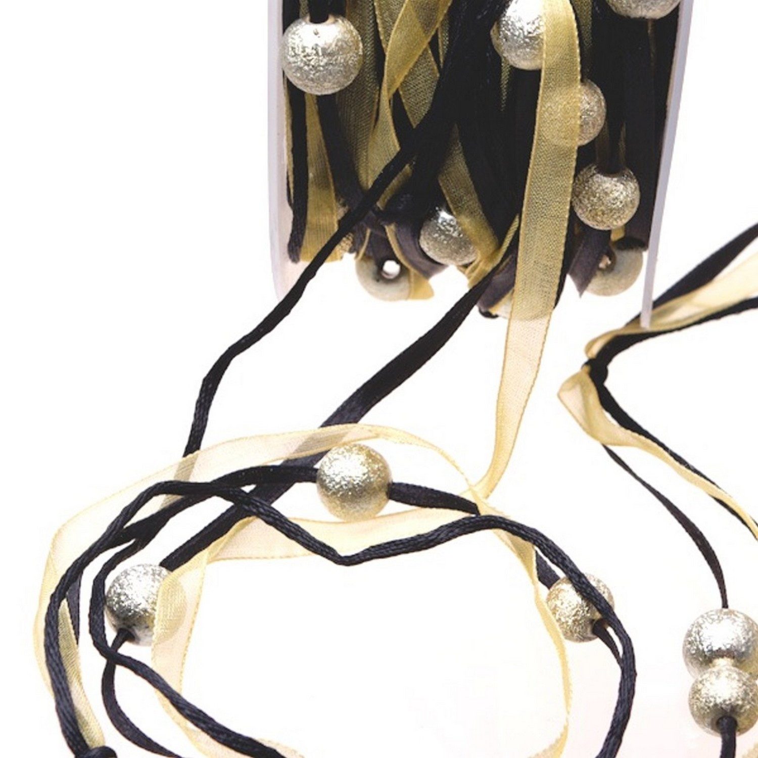 Diese hochwertige Dekokordel in Schwarz-Gold vereint drei edle Materialien zu einem einzigartigen Deko-Accessoire: ein zartes Organzaband, eine glänzende Seidenkordel und matt schimmernde Perlen. Die 20 mm breite und 10 Meter lange Kordel ist ein echter Blickfang – perfekt geeignet für kreative Dekorationen, festliche Geschenkverpackungen oder als edler Akzent in weihnachtlichen Gestecken. Dank der Kombination aus glänzender und matter Optik wirkt die Kordel besonders edel und festlich. Die schwarzen und goldfarbenen Elemente harmonieren perfekt mit klassischen Weihnachtsfarben und verleihen jeder Dekoration eine luxuriöse Note. Ob als Schleife, Umrandung von Kerzen, auf Adventskränzen oder Tischdekoration – diese Kordel bringt Eleganz in jeden Raum. Ein Must-have für alle, die Wert auf stilvolle Details in der Adventszeit legen!