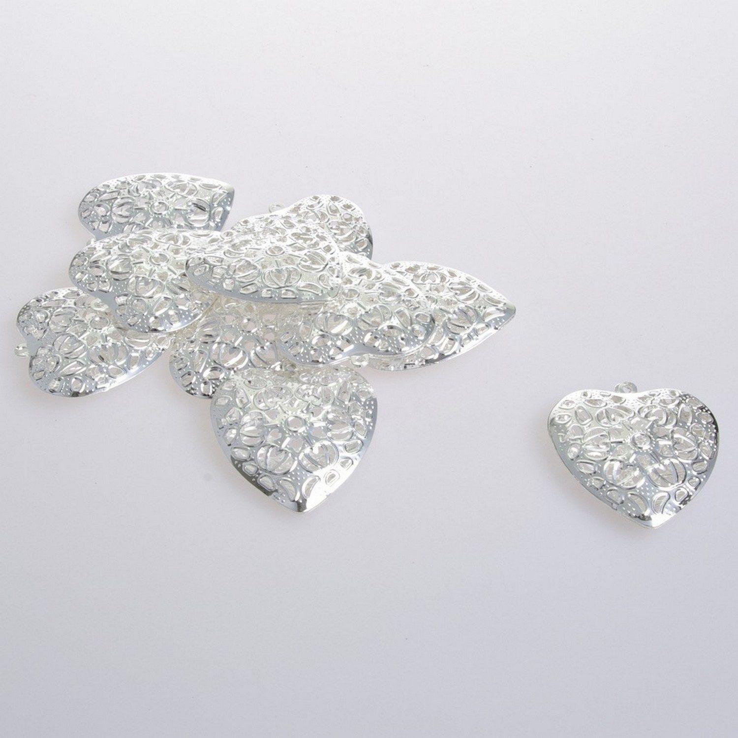 Dekoherzen aus feinem Metall mit Durchbruchmuster sind eine elegante und stilvolle Möglichkeit, um ein Zimmer zu dekorieren oder als Geschenk zu präsentieren. Diese besondere Варианты ist etwa 4,5 cm groß und besteht aus Metall, das mit einem silbernen Farbton versehen ist. Das Durchbruchmuster des Herzens ist aufwändig ziseliert und verleiht dem Objekt eine filigrane, romantische Ausstrahlung. Durch das feine Muster im Metall erzeugt das Licht wunderschöne Schatten auf umliegende Flächen und schafft eine angenehme, ruhige Atmosphäre. Das Herz verfügt über eine Öse an der Oberseite, die es ermöglicht, das Dekostück leicht an einer Wand, einem Türknauf oder einer Lampe aufzuhängen. Diese Öse wurde sorgfältig in das Design integriert und fügt sich nahtlos in das Gesamtbild des Herzens ein. Insgesamt ist das Dekoherz aus feinem Metall mit Durchbruchmuster in silber ein äußerst ansprechendes und qualitativ hochwertiges Dekorationsobjekt, das jedem Raum eine romantische und nostalgische Note verleiht.