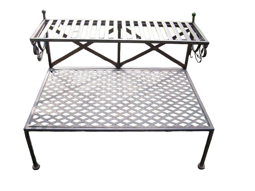 Blumentreppe / Pflanzentreppe Vollständig aus Eisen. Hervorragende Verarbeitungsqualität.. Sehr stabil und belastbar. Zweistufig, mit großer Hauptablage. Dunkelrostfarben lackiert. Ein Schmuckstück. Breite ca. 75 cm Höhe ca. 55 cm Tiefe ca. 50 cm Ablagenflächen: 75 x 50 cm und 75 x 25 cm Abstand zwischen den Ablagen: 24,5 cm Die Lieferung erfolgt teilzerlegt. Mit 8 Schrauben in 5 Minuten montiert.
