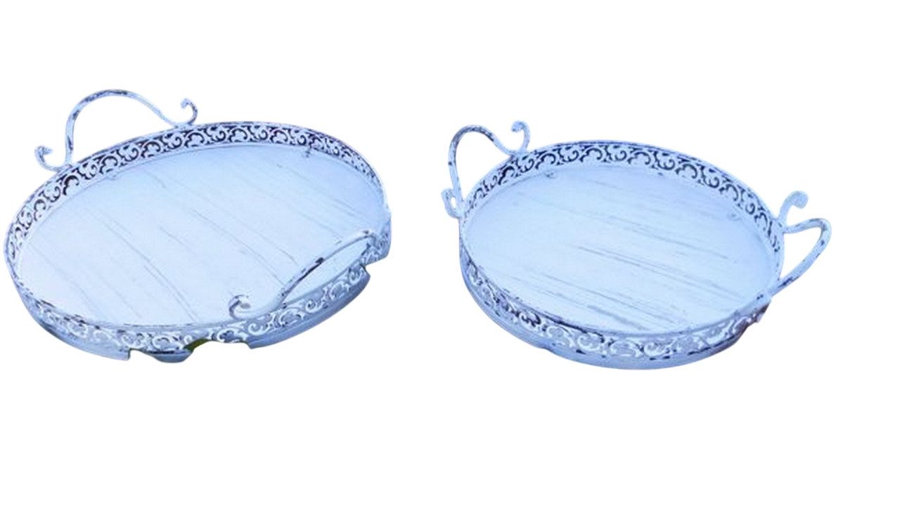 Dekotablett Tablett-Set 2 Stück / 2 Größen rund Antikstyle weiß 26 + 33 cm