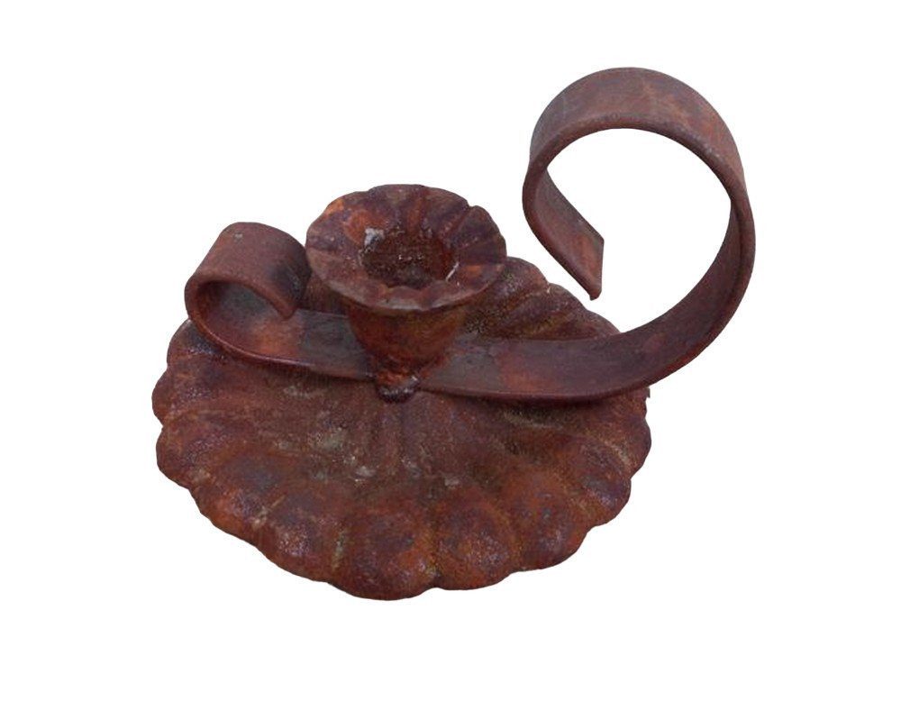 Kerzenhalter / Kerzenständer Kerzenhalter / Kerzenständer. Material: Massives, schweres Eisen. Fest verschweisst. Mit Tropfblech und praktischem Griff. Wunderschöne Echtrost-Patina. Herrvorragende Verarbeitungsqualität. Wunderschönes, nostalgisch-mediterranes Design. Für handelsübliche Stabkerzen. Ca. 12 cm breit . Ca. 9 cm hoch. Hohes Eigengewicht, ca. 0,4 Kilogramm.