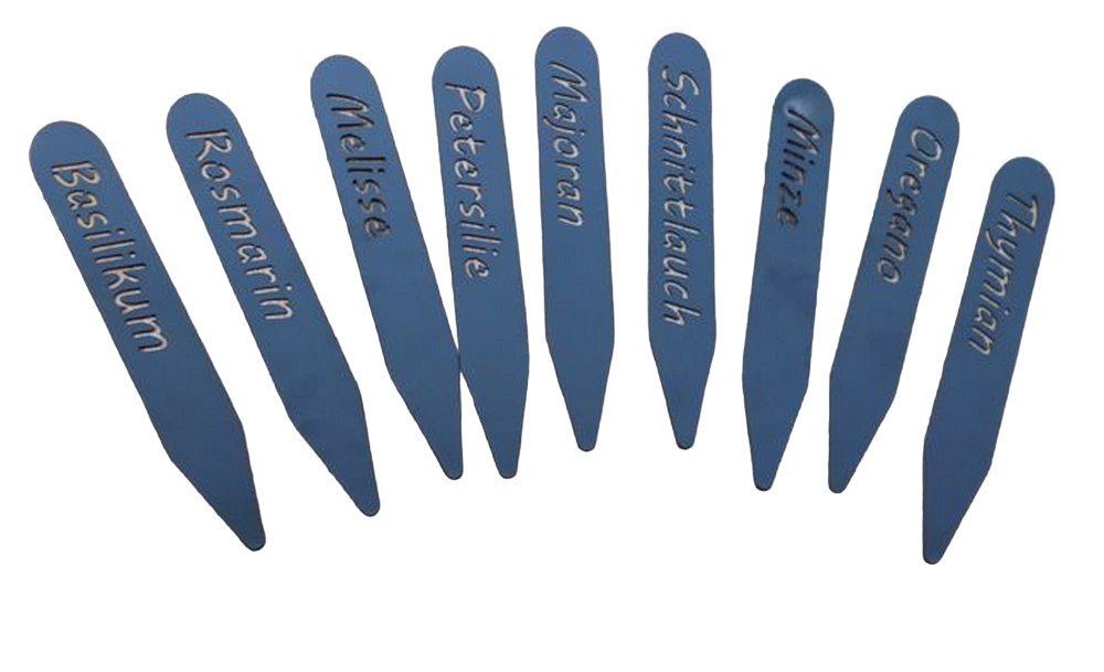 Kräuterstecker / Topfstecker / Beetstecker Set 9Stück Zur Kennzeichung iher Kräuter und Gewürze und zur Dekoration für Pflanztöpfe, Gartenbeete, Balkon. 9 Stück Kräuterstecker / Gewürzstecker im Set. Rosmarin, Thymian, Melisse Oregano, Schnittlauch, Petersilie, Majoran, Minze, Basilikum. Material: Stabiles Eisenblech , schwarz lackiert. Größen jeweils ca. 20 cm x 3 cm (1mm stark)