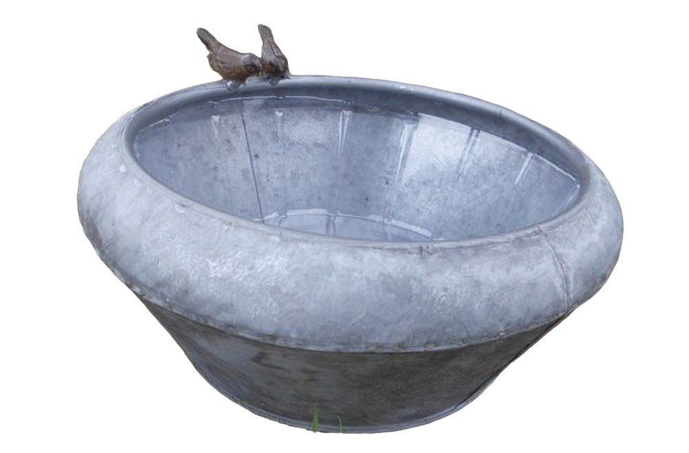 Zinkschale / Pflanzschale / Vogeltränke Traumhaft schöne Zinkschale / Pflanzschale / Vogeltränke. Mittelgroße Zinkschale mit 28 cm Außendurchmesser. Grau- Antikstyle. Eisen. Verzinkt und dadurch unempfindlicher gegen Rost. Wasserdicht verarbeitet. Zum Schutz gegen Dauerfeuchtigkeit mit einem Kunststoffeinsatz. Außendurchmesser 28 cm. Höhe am Rand 11,5 cm. Durchmesser am Boden 19 cm.