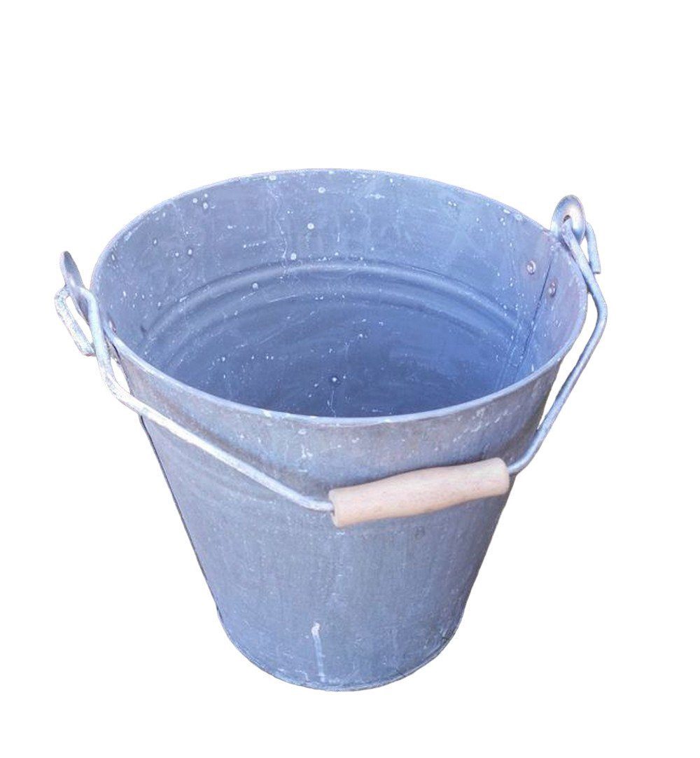 Wassereimer / Pflanzkübel / Blumentopf Stabiler, dekorativer Eimer / Wassereimer / Pflanzkübel / Übertopf aus Eisen, verzinkt. Stabiler, fest vernieteter Henkel mit Holzgriff. Der Eimer ist vollständig gesschlossen und wasserdicht verarbeitet. Höhe 29 cm, mit Henkel ca. 40 cm. 28 cm Durchmesser am oberen Rand. Durchmesser unten 20 cm.