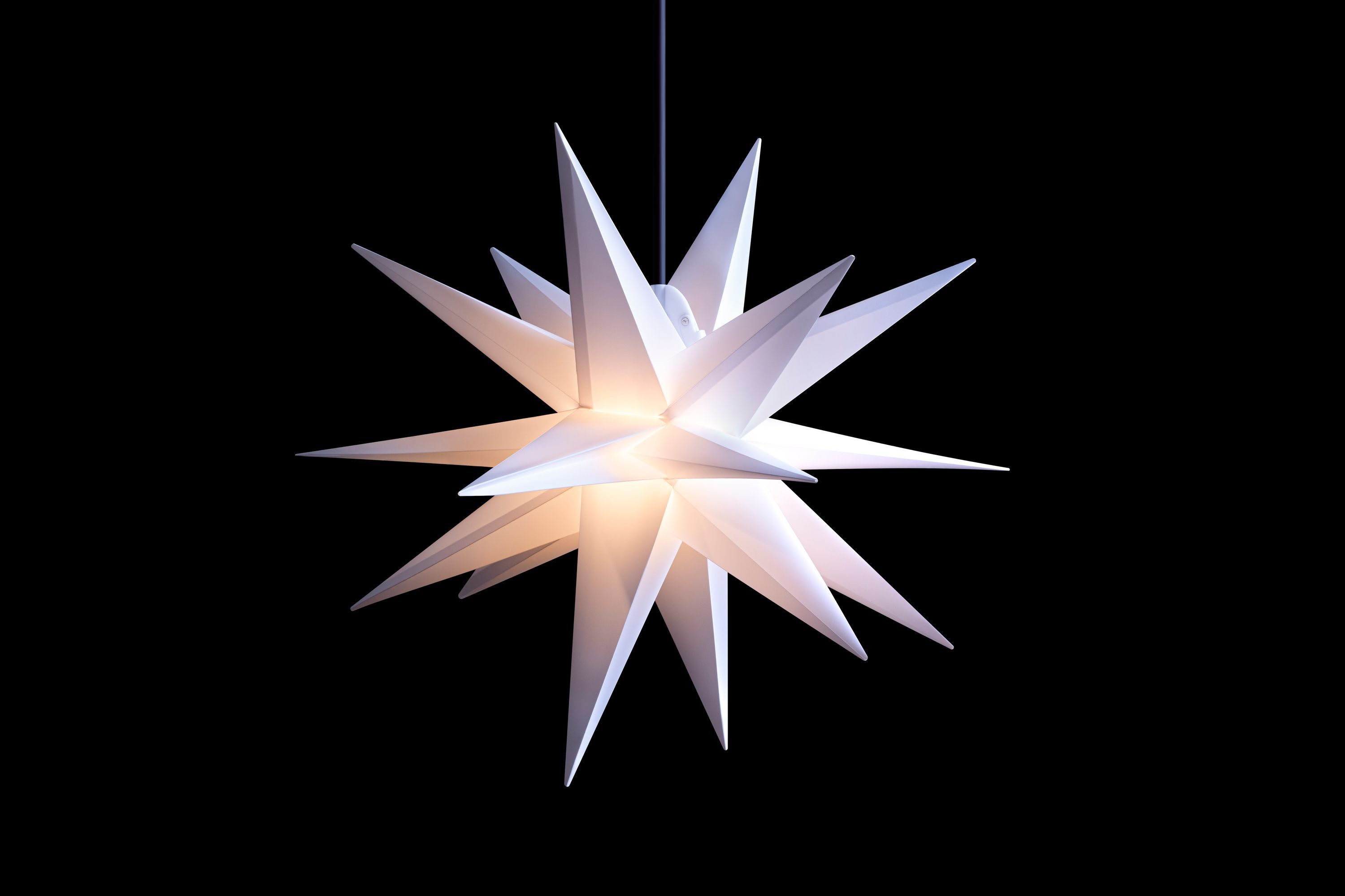 Lass dein Zuhause in einem warmen, festlichen Licht erstrahlen mit dem Sterntaler Dekostern! Dieser wunderschöne 18-Zacker-Stern in strahlenden Farben ist nicht nur ein Hingucker, sondern auch ein Ausdruck deines individuellen Stils. Ob auf der Terrasse, im Garten oder im Eingangsbereich ' der 55 cm große Stern bringt eine gemütliche Atmosphäre in deinen Außenbereich und lässt dein Zuhause in der dunklen Jahreszeit leuchten. Der Sterntaler Dekostern ist mehr als nur eine Dekoration. Er ist ein Stimmungsaufheller, der die dunklen Monate erhellt und eine festliche Stimmung verbreitet. Mit seinem warmen Licht schafft er ein einladendes Ambiente, das deine Gäste begeistern wird. Und dank seiner ansprechenden Verpackung ist er auch das perfekte Geschenk für deine Liebsten. Aber der Sterntaler Dekostern überzeugt nicht nur durch seine Ästhetik, sondern auch durch seine Praktikabilität. Er ist einfach zu installieren und zu bedienen. Mit einer Kabellänge von ca. 4m bietet er dir genügend Spielraum für die Platzierung. Der Stern ist aus hochwertigen Materialien gefertigt und daher besonders langlebig. Eine Besonderheit dieses Sterns ist seine Faltbarkeit. So kannst du ihn in Sekundenschnelle entfalten und nach der Weihnachtszeit platzsparend verstauen und im nächsten Jahr wieder zum Einsatz bringen. Der Stern ist für den Betrieb mit verschiedenen E14-Leuchtmitteln bis max. 15 Watt geeignet (Leuchtmittel nicht im Lieferumfang enthalten). Der Sterntaler Dekostern ist aus hochwertigen Materialien gefertigt und dank seiner Schutzart IP44 für den Außenbereich geeignet. Mach dein Zuhause mit dem Sterntaler Dekostern zum leuchtenden Highlight und genieße die warme, festliche Atmosphäre. Bestelle jetzt und erlebe, wie dieser wunderschöne Stern dein Zuhause in ein gemütliches Licht taucht!