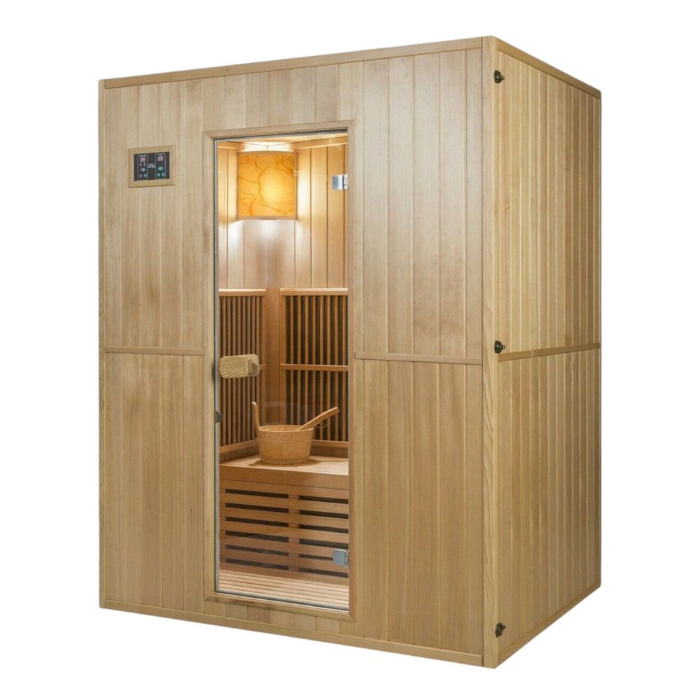 Im Unterschied zu einer finnischen Sauna bzw. einer Dampfsauna, in der neben hohen Temperaturen vor allem eine hohe Luftfeuchtigkeit herrscht, ist eine Sauna mit Infrarotstrahlern mit mehreren Heizelementen ausgestattet, welche ihre Heizwärme an die Umgebung, in diesem Fall innerhalb einer Kabine aus bestem Hemlock-Holz, abgeben. Die sanfte Wärme entfaltet sich jedoch erst beim Auftreffen der Strahlen auf der Haut und sorgt für ein angenehmes und warmes Gefühl.