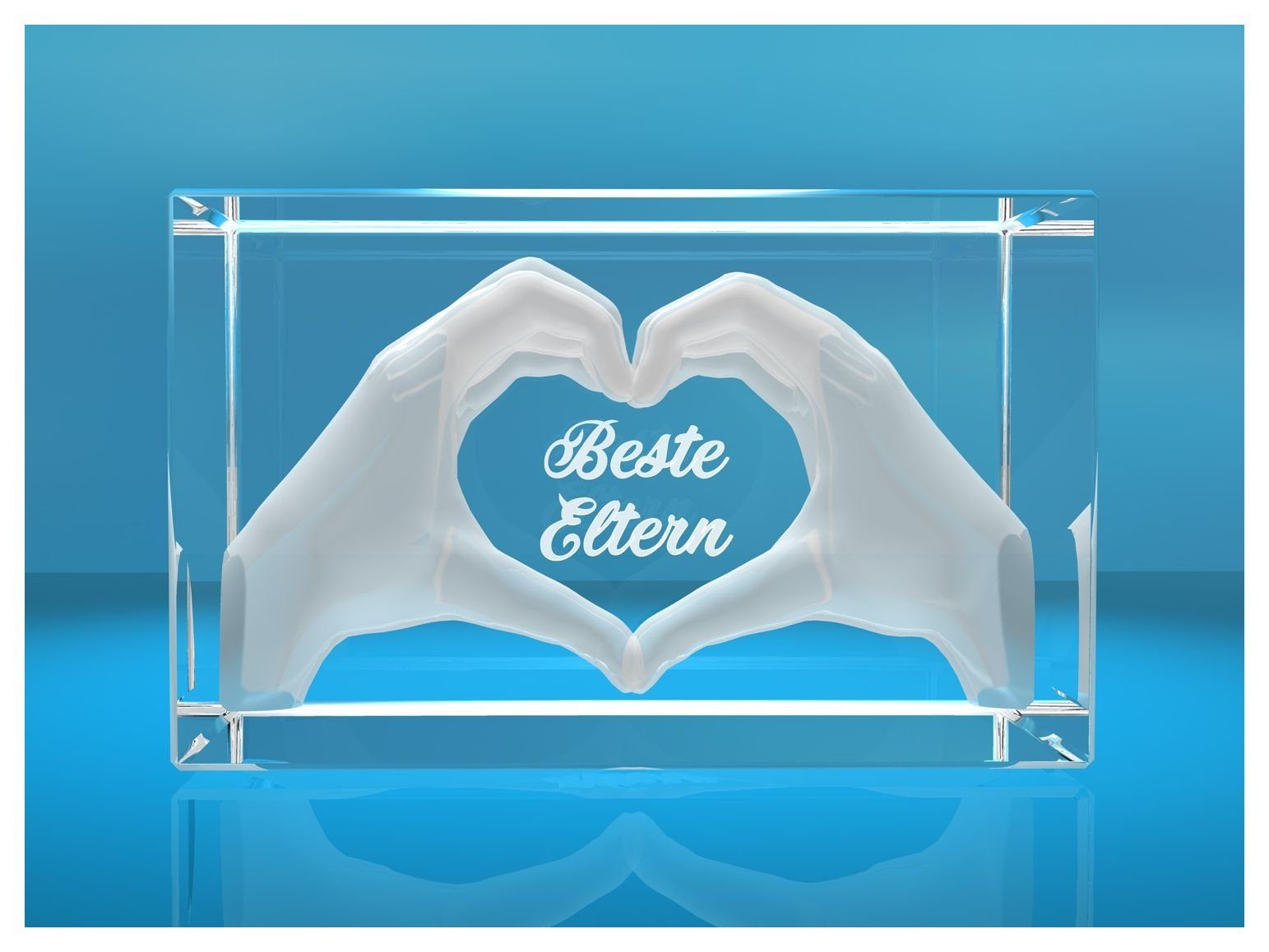 Entdecken Sie ein außergewöhnliches Geschenk: den 3D Glasquader "Herz aus Händen" mit Gravur - Ideal für die besten Eltern! In diesem edlen Glasquader verschmelzen zwei liebevoll geformte Hände zu einem Herz, das symbolisch für die unendliche Liebe und Dankbarkeit steht, die Sie Ihren Eltern entgegenbringen. Mit dem eingravierten Text "Beste Eltern" wird dieser Glasquader zu einem einzigartigen Erinnerungsstück, das die Herzen Ihrer Eltern höherschlagen lässt. Perfekt als Geschenk zum Geburtstag, Muttertag, Vatertag oder einfach, um einmal Danke zu sagen. Hergestellt aus hochwertigem Kristallglas, ist dieser Quader nicht nur ein optisches Highlight, sondern auch langlebig und robust. Die zeitlose Eleganz passt in jede Einrichtung und wirkt besonders schön, wenn das Licht auf die Kanten fällt und das Herz zum Leuchten bringt. Überreichen Sie Ihren Eltern ein Geschenk, das mehr als tausend Worte sagt - für Eltern, die alles verdient haben!