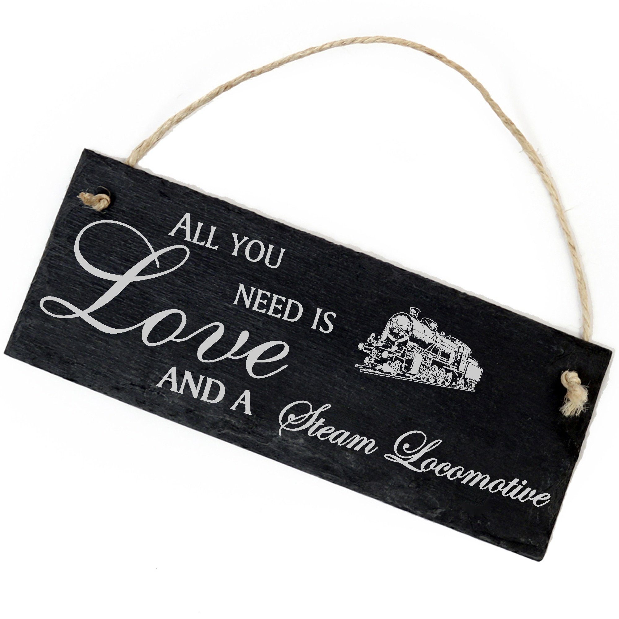 • HÄNGEDEKO: Schöne Dekoration im retro oder vintage Stil mit dem Spruch - All you need is Love and a Steam Locomotive - die Türdeko ist nicht nur lustig sondern auch modern