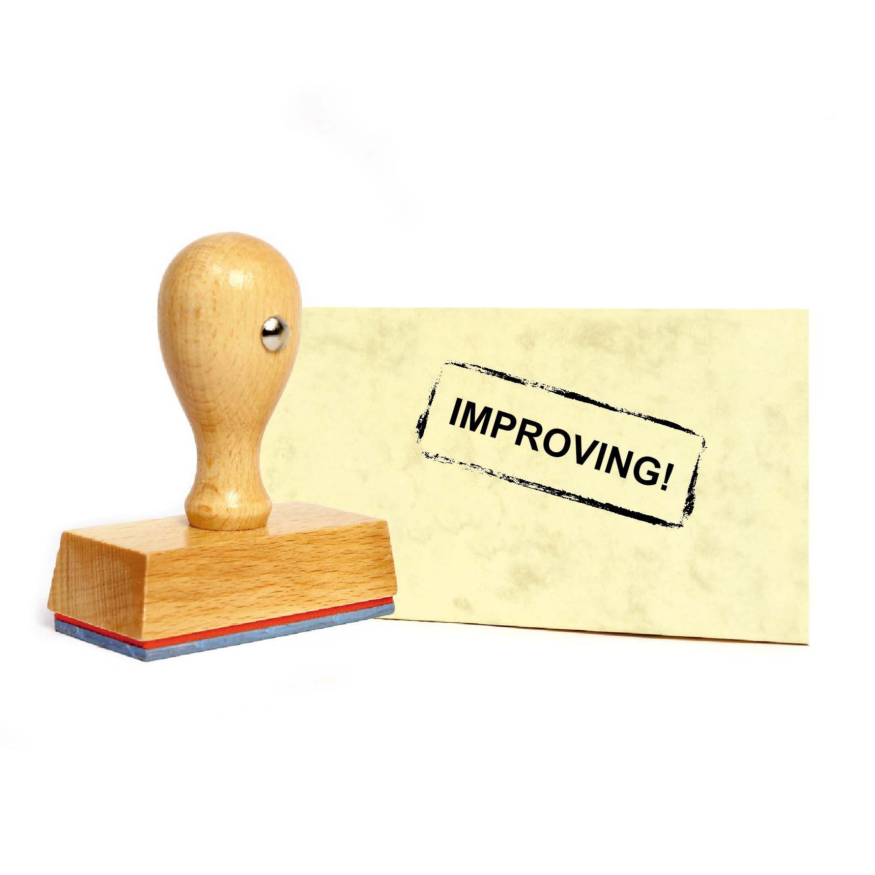 Sie erwerben einen Holzstempel mit abgebildetem Abdruck IMPROVING mit einem Vintage Rahmen.