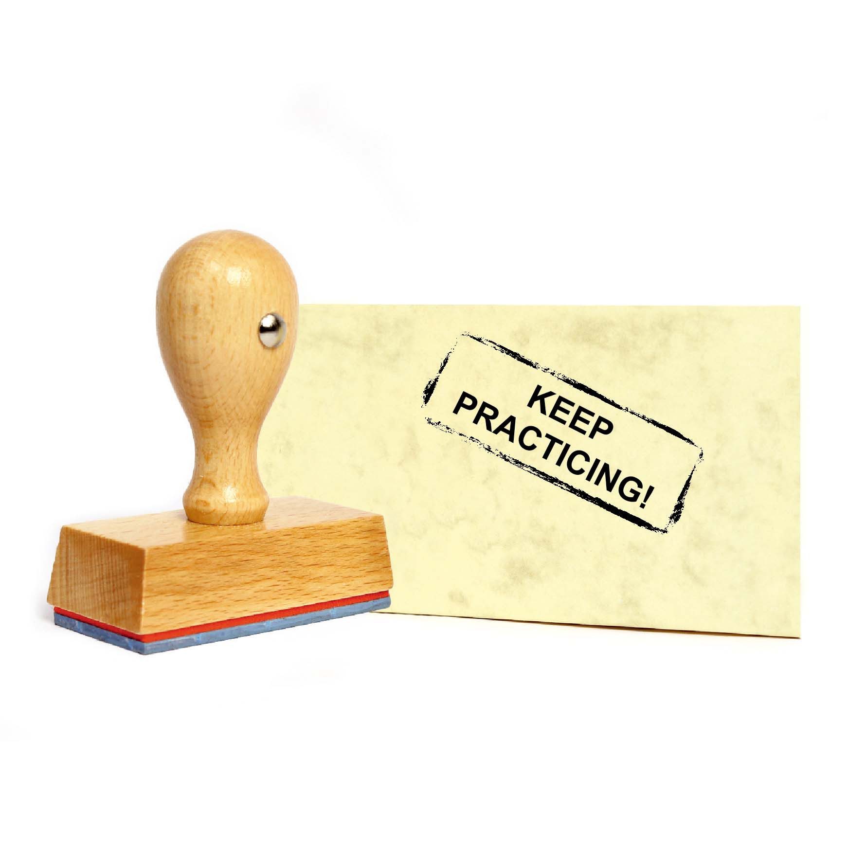Sie erwerben einen Holzstempel mit abgebildetem Abdruck KEEP PRACTICING mit einem Vintage Rahmen.