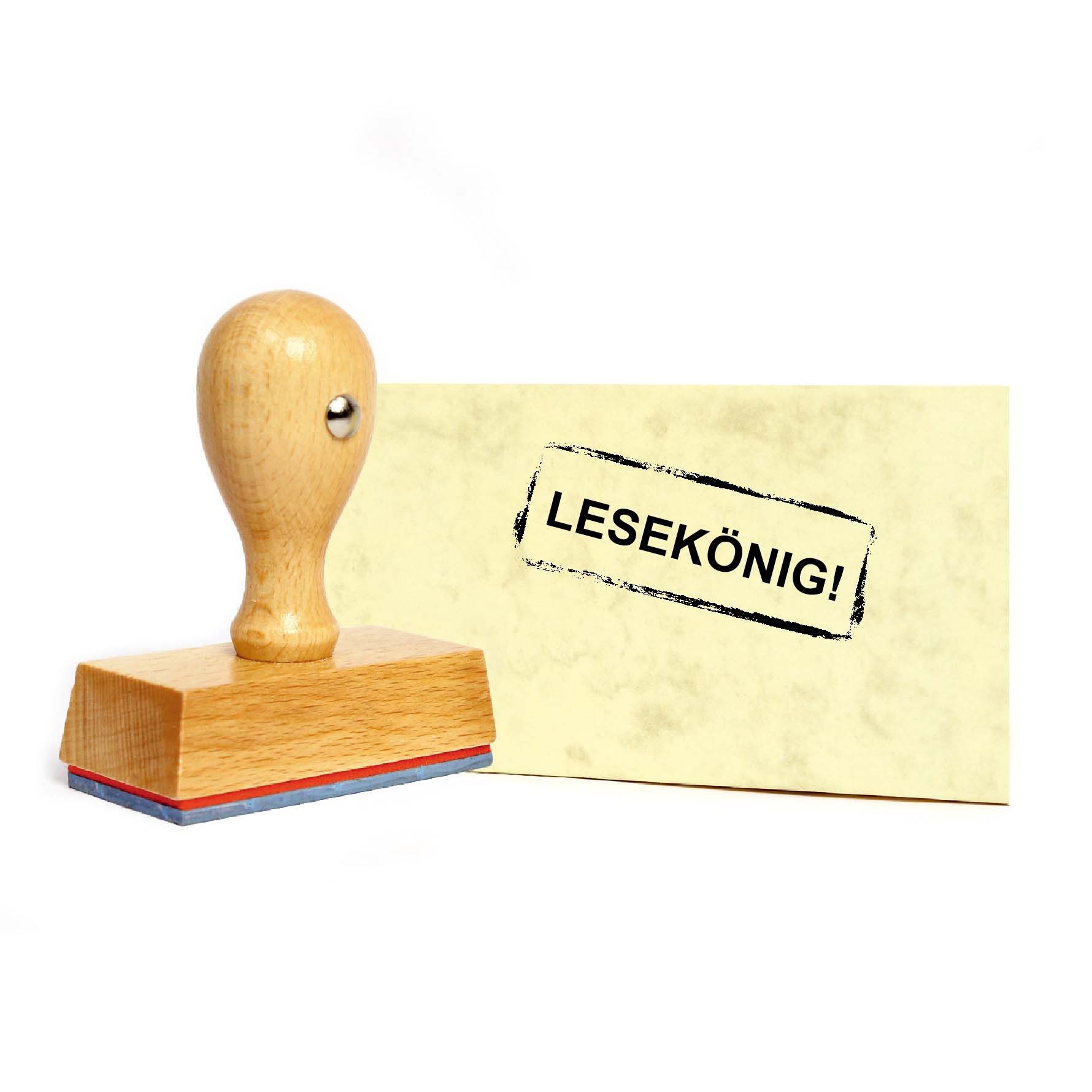 Sie erwerben einen Holzstempel mit abgebildetem Textabdruck LESEKÖNIG mit einem Vintage Rahmen.