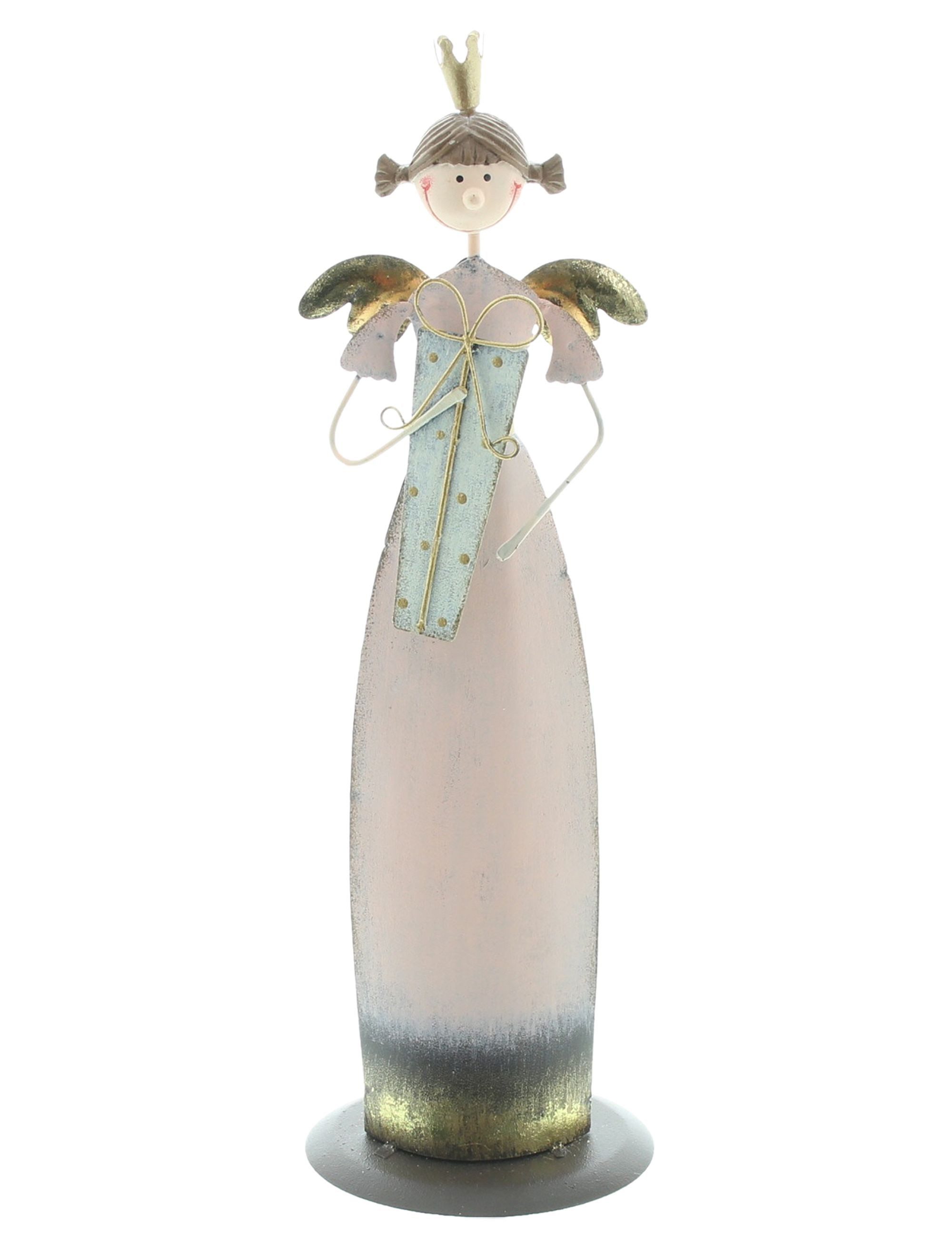 Gefertigt aus robustem Metall, zeichnet sich die Figur durch Langlebigkeit und eine sorgfältige Verarbeitung aus. Die liebevollen Details wie die goldfarbenen Flügel und die kleine Krone verleihen der Engelsfigur einen charmanten und einzigartigen Charakter.