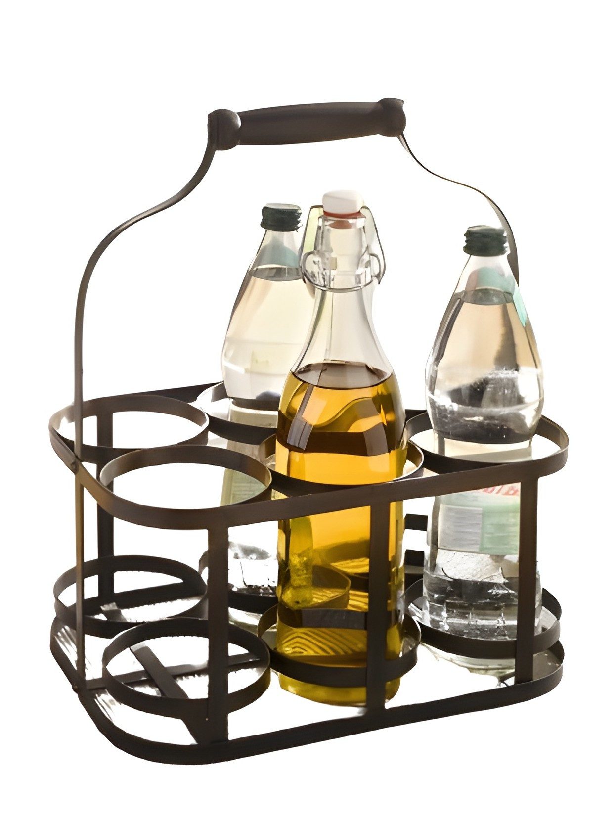 Unser formschöner Flaschenkorb fasst bis zu 6 Flaschen. Egal ob Wasser, Bier oder Wein, mit dem Flaschenträger transportieren Sie mehrere Flaschen gleichzeit komfortabel und sicher. Gefertigt ist der Getränketräger aus robustem Metall, so dass Sie sicher sein können, dass alle Ihre Flaschen heil am Ziel ankommen, da nichts reisst oder bricht. Das Metall ist in einem dunklen Antikton gehalten, was seine nostalgische Optik noch verstärkt. Der Tragegriff ist aus Holz gefertigt, so dass der Bierflaschenträger oder Weinflaschenträger gut in der Hand liegt und sich bequem tragen lässt. Der Flaschenhalter ist 32 cm breit, 21 cm tief und 16 cm hoch. Die Gesamthöhe mit Griff beträgt 37 cm. Die Lieferung erfolgt ohne Dekoration.