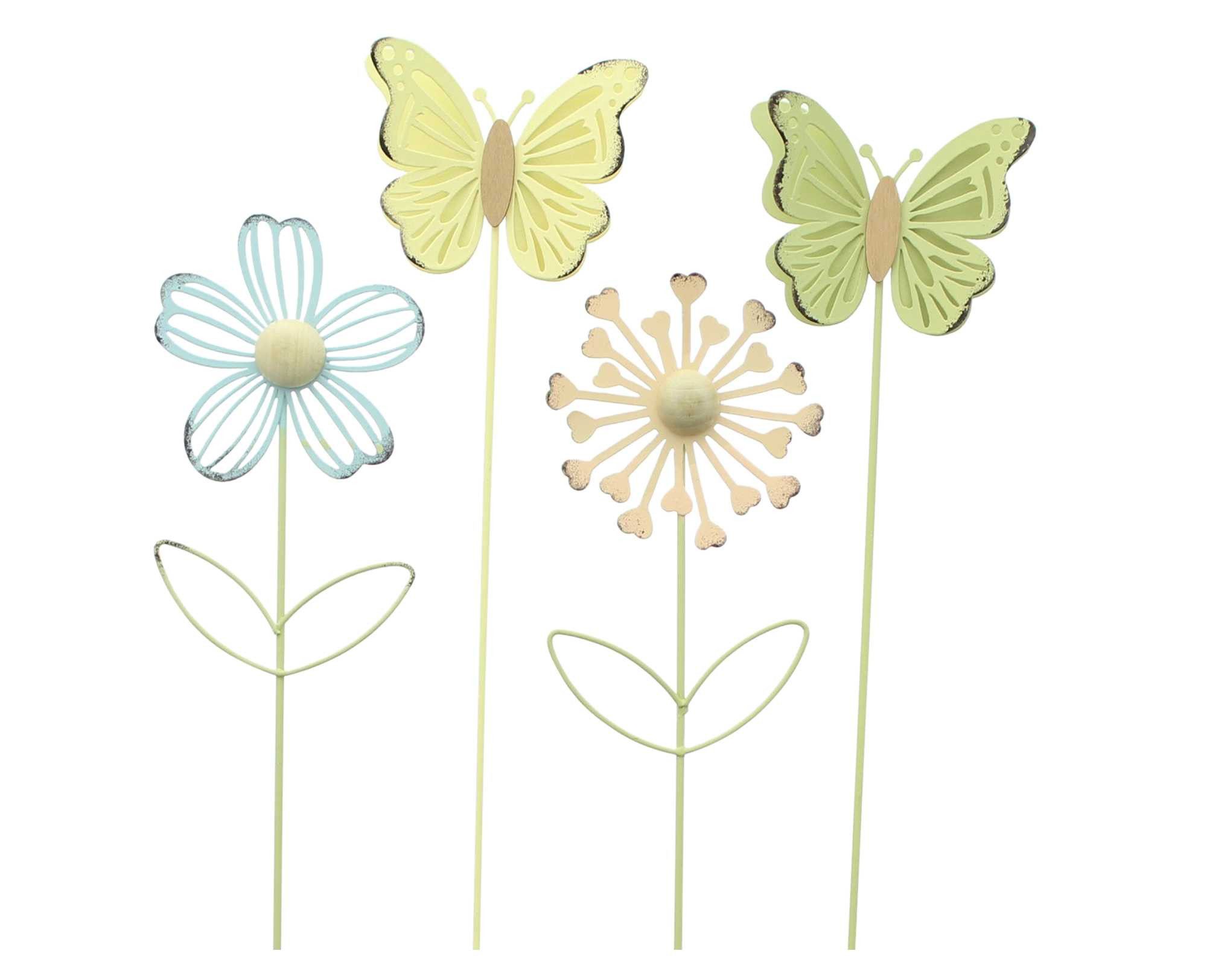 Bringen Sie frühlingshafte Leichtigkeit und verspielte Farben in Ihre Dekoration – mit dem liebevoll gestalteten 4er Set Blumenstecker „Blume & Schmetterling“. Die charmanten Deko-Stecker aus lackiertem Metall mit den liebevollen Gebrauchsspuren sind eine wunderbare Möglichkeit, um Blumentöpfe, Gestecke, Pflanzkästen oder auch den Garten kreativ zu verschönern.