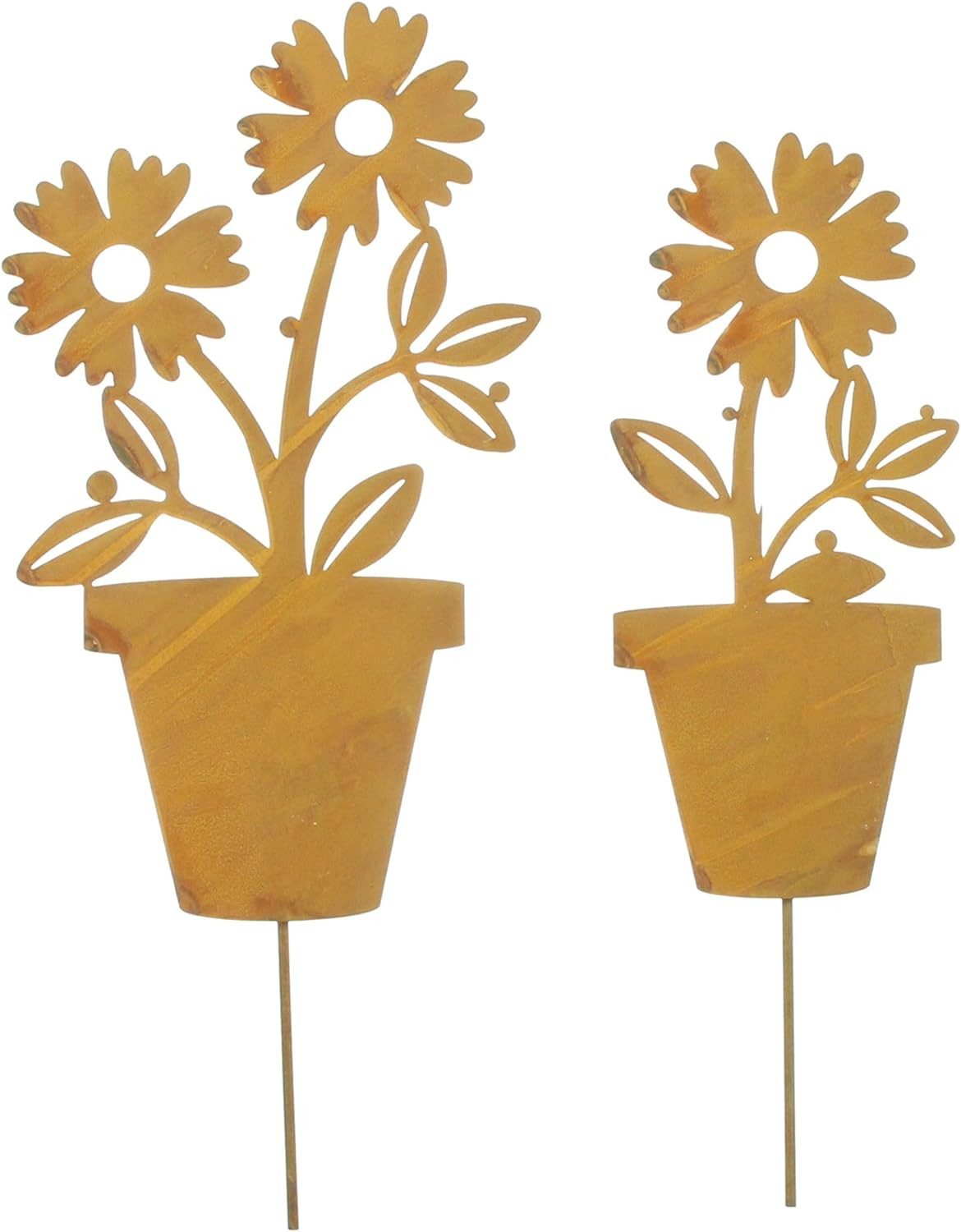 2er Set Gartenstecker "Blumentopf" aus Metall mit Echtrost-Finish