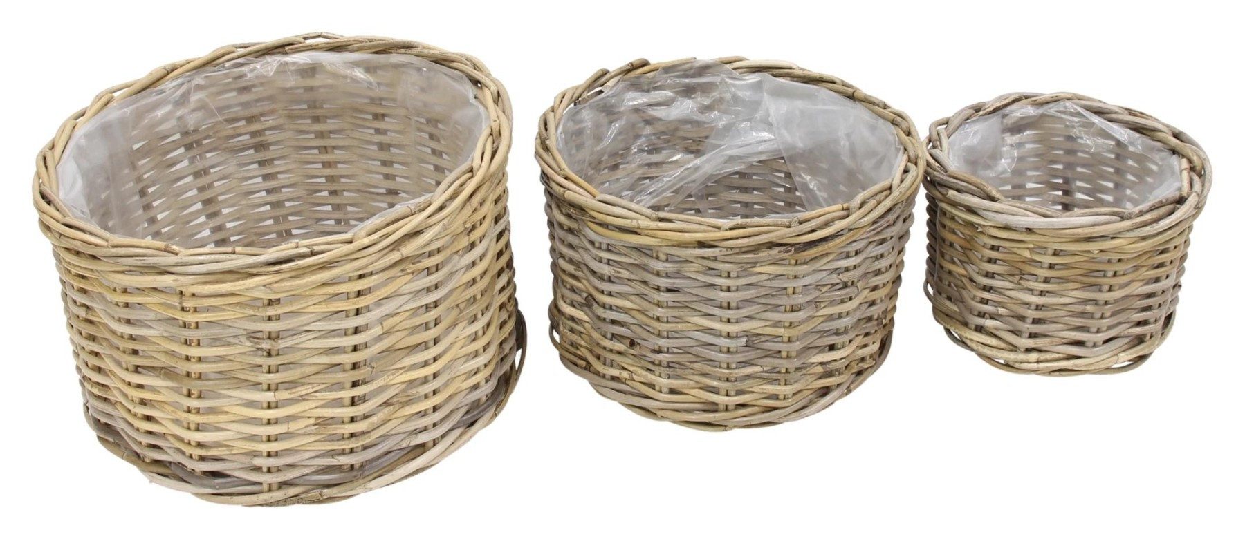 Pflanzkorb „Koboo Grey“ im 3er Set – Natürliches Flair für Garten, Terrasse und Balkon
