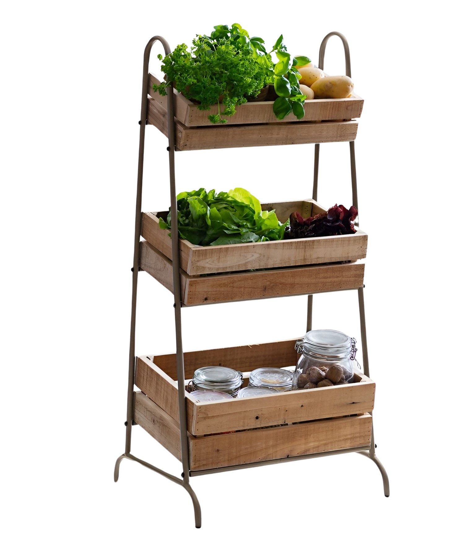 Mit einer Размер von ca. B 43 x T 39 x H 100 cm bietet der Küchen-Organizer ausreichend Platz für Obst, Gemüse, Dekorationen, Küchenutensilien oder andere Alltagsgegenstände. Es eignet sich hervorragend für Wohnzimmer, Küche, Bad, Keller oder als stilvolles Ordnungssystem in Ihrem Eingangsbereich.