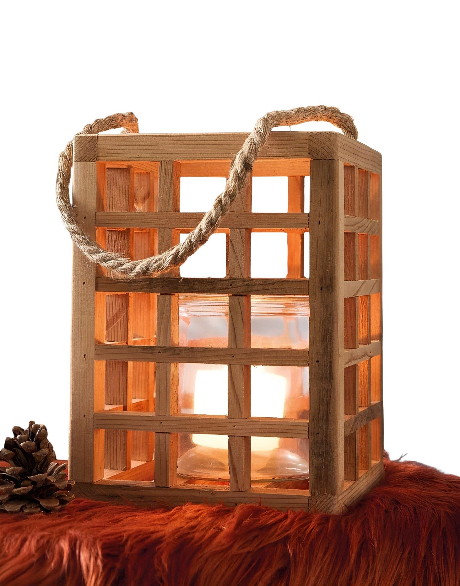 Die Holzlaterne besticht durch seinen natürlichen Charme. Gefertigt aus recyceltem Holz, ist es nicht nur umweltfreundlich, sondern verleiht Ihrem Zuhause auch eine rustikale und zugleich moderne Note.