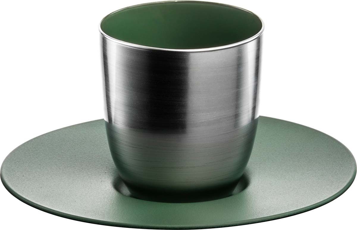 1 EISCH Espresso-Glas mit Untersetzer COSMO collect silver/green, innen angenehm grün, außen silberschimmernd,