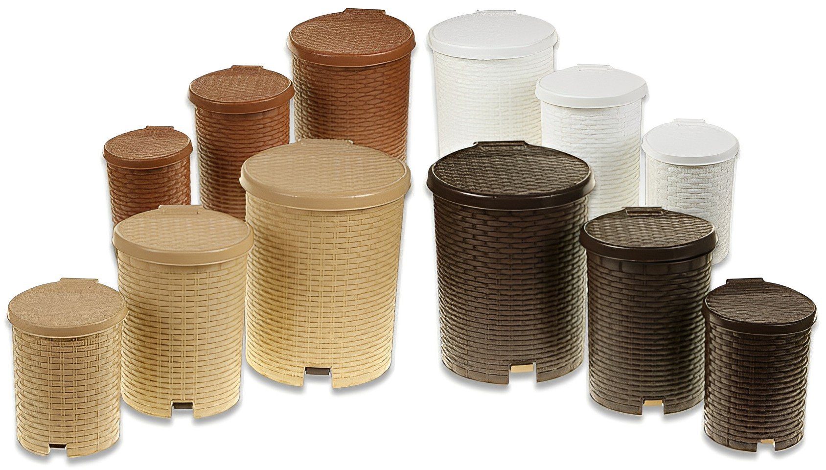 Artikelbezeichnung: Violet Rattan 3-er Tretabfalleimer-Set 0725-Weiss
