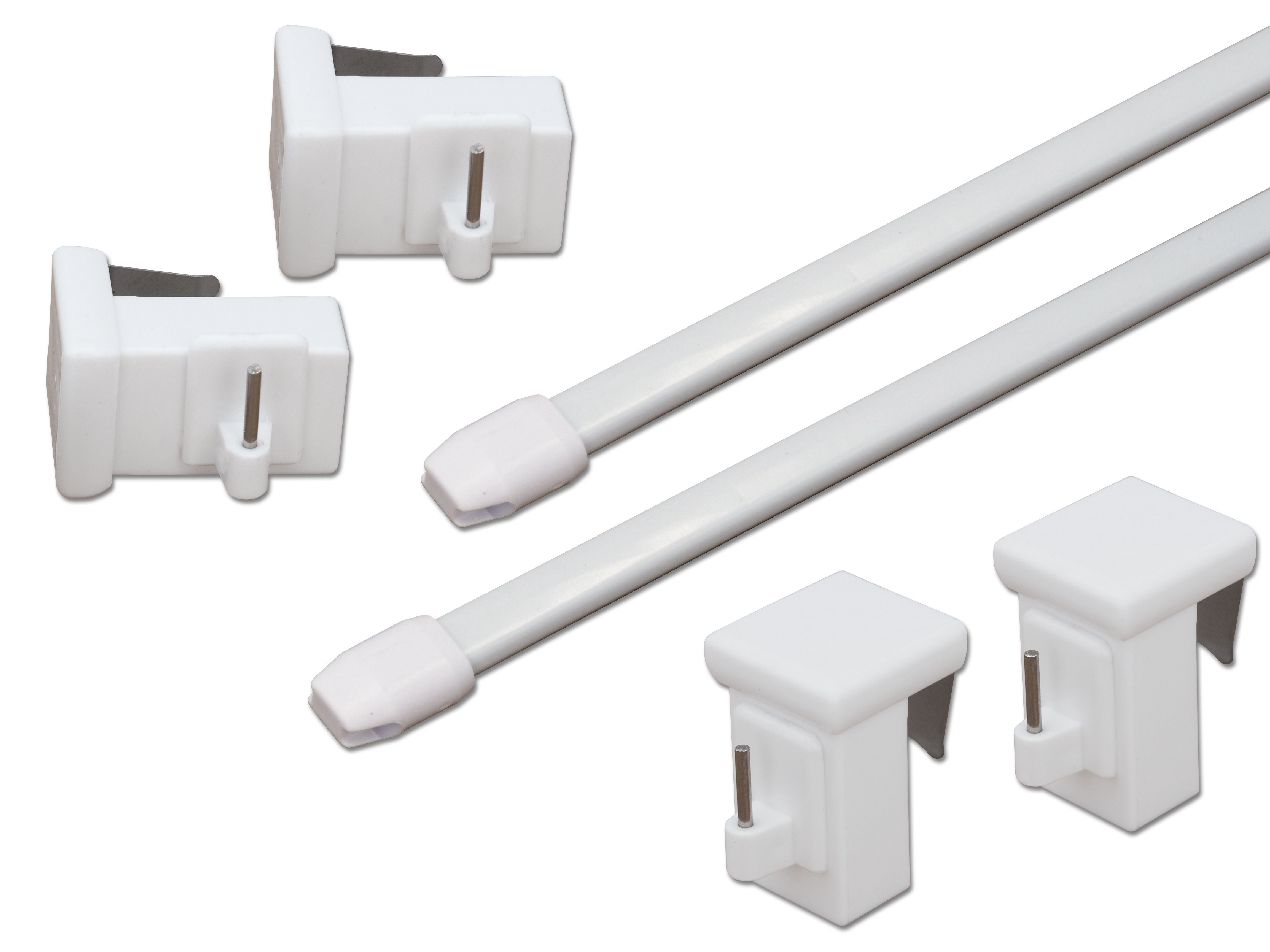 Inkl. 4x Fensterhaken/Befestigungsmaterial in weiß. Das vordere Element der Haken ist drehbar. Somit ist eine eine Montage „oben“ oder „seitlich“ an Ihrem Fenster möglich