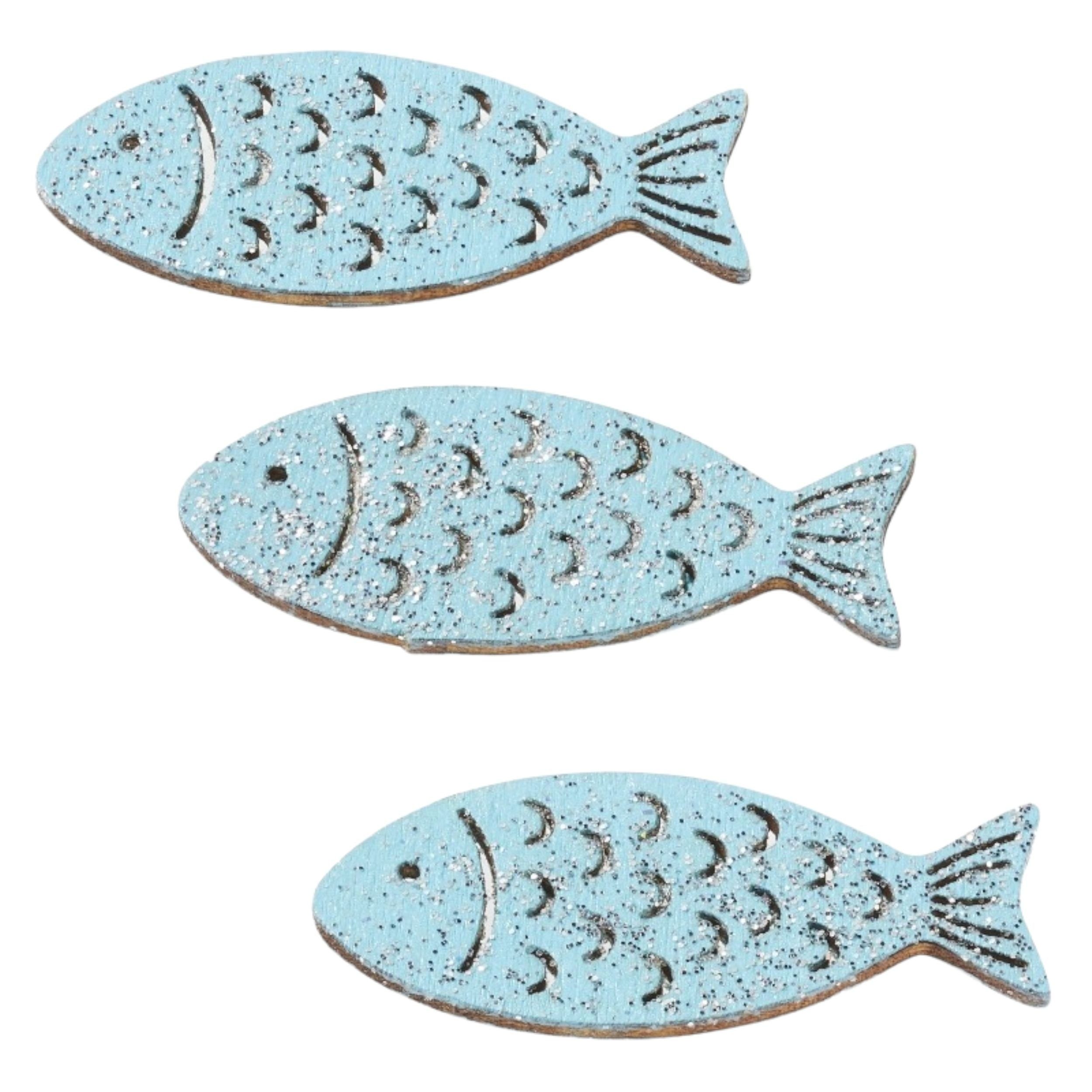 Dieses Set besteht aus 12 flachen Holzfischen in einer Размер von 4 cm, gestaltet in einem ansprechenden Helltürkis mit Glitzer. Sie eignen sich hervorragend als Streudeko für verschiedene Anlässe, sei es zur Verzierung von Karten, zur Tischdekoration oder für andere kreative Bastelprojekte. Die Fische sind aus hochwertigem Holz gefertigt, was ihnen eine robuste Struktur verleiht und eine langlebige Nutzung ermöglicht. Ihre funkelnde Oberfläche bringt einen besonderen Glanz in jede Dekoration und setzt stilvolle Akzente.