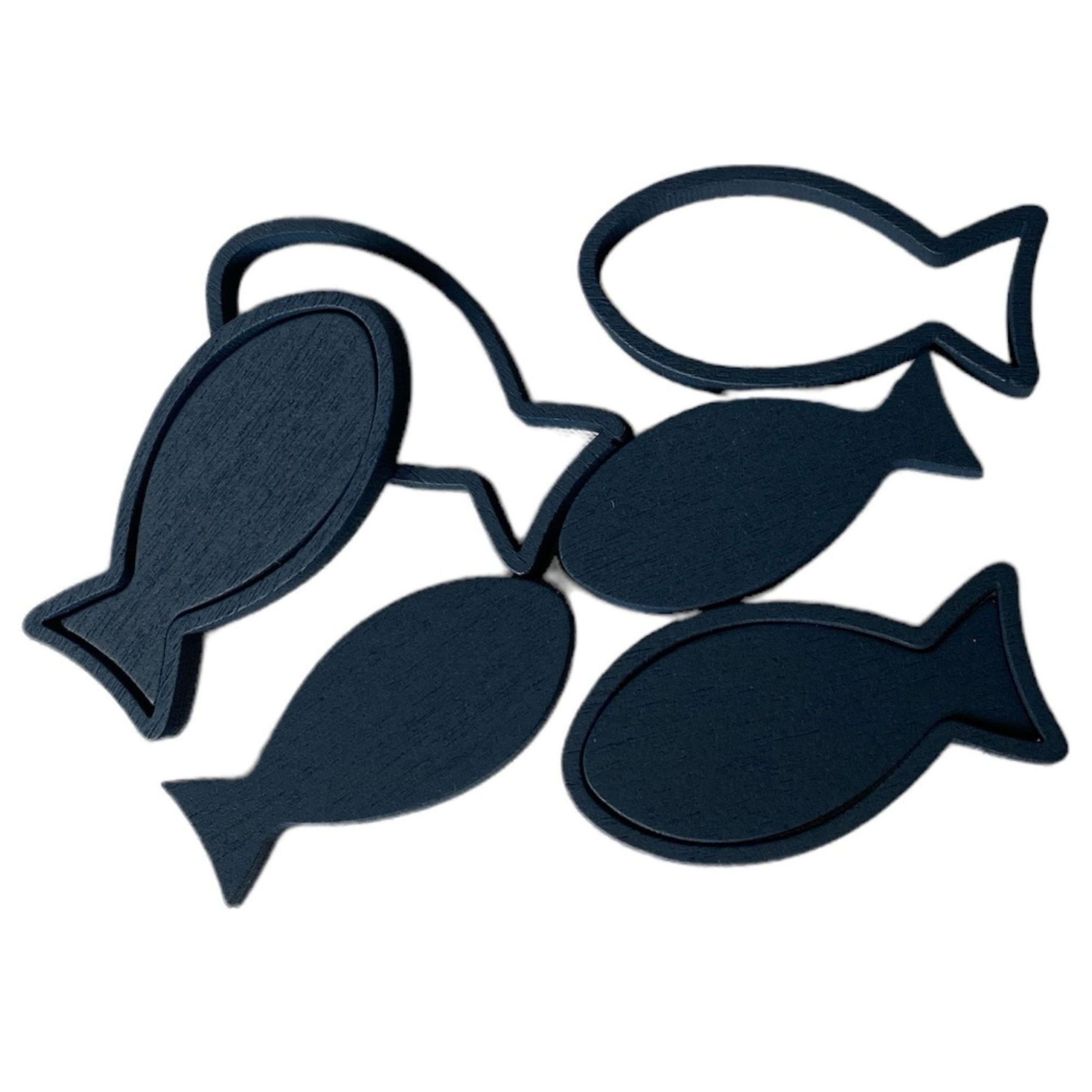 DekoTown Streudeko Holz Fische Dunkelblau 4 cm, 24 St. Kommunion Konfirmation Taufe