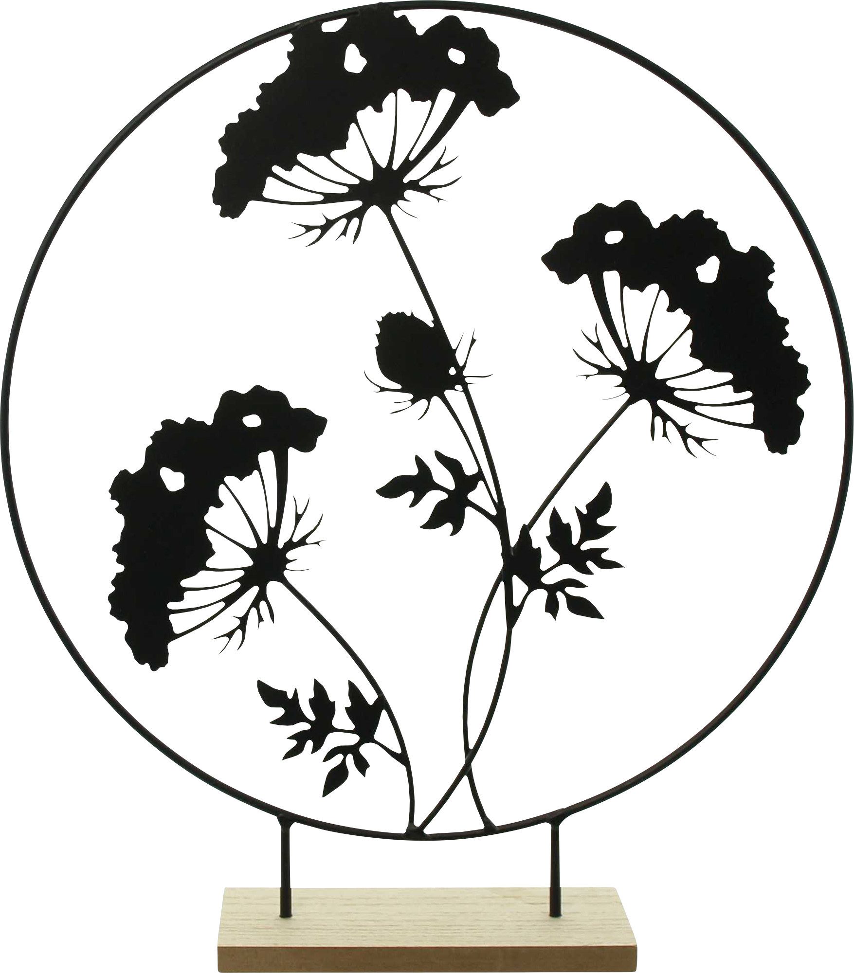 Deko-Ring "Blumen". Die liebevoll gestaltete Blumenausstanzung im Metallring bringt eine frische Note in Ihr Ambiente. Aus schwarz lackiertem Metall, Sockel aus Holz.