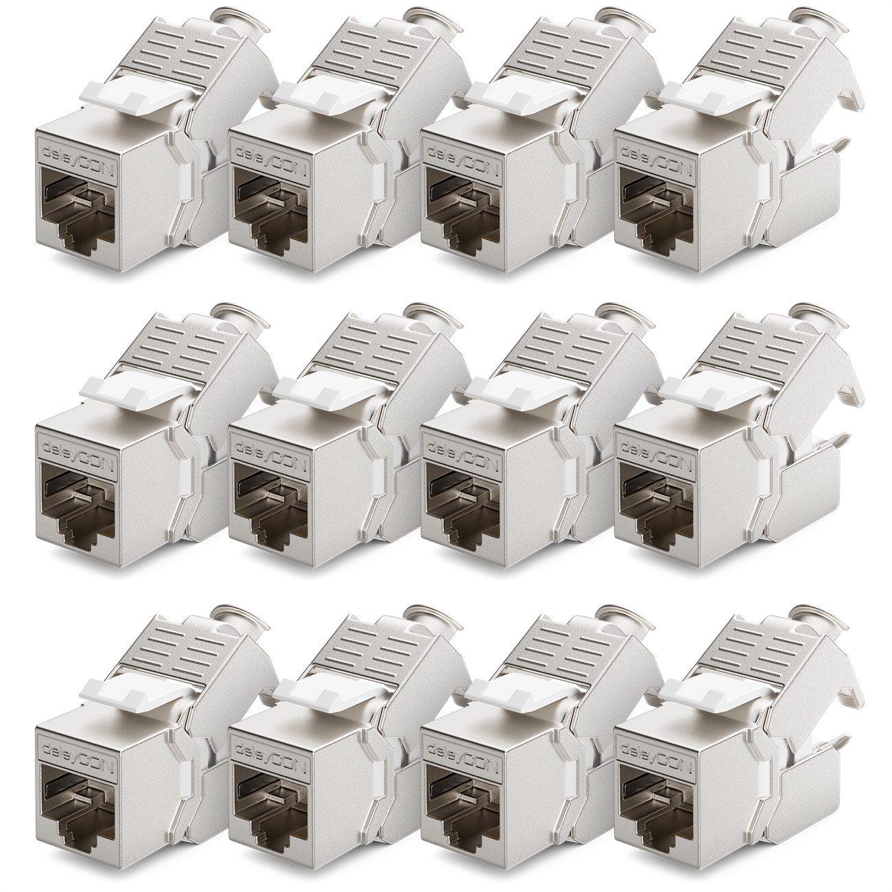 deleyCON 12x CAT6a Keystone Jack Modul STP Schirmung RJ45 Buchse Netzwerk-Adapter
