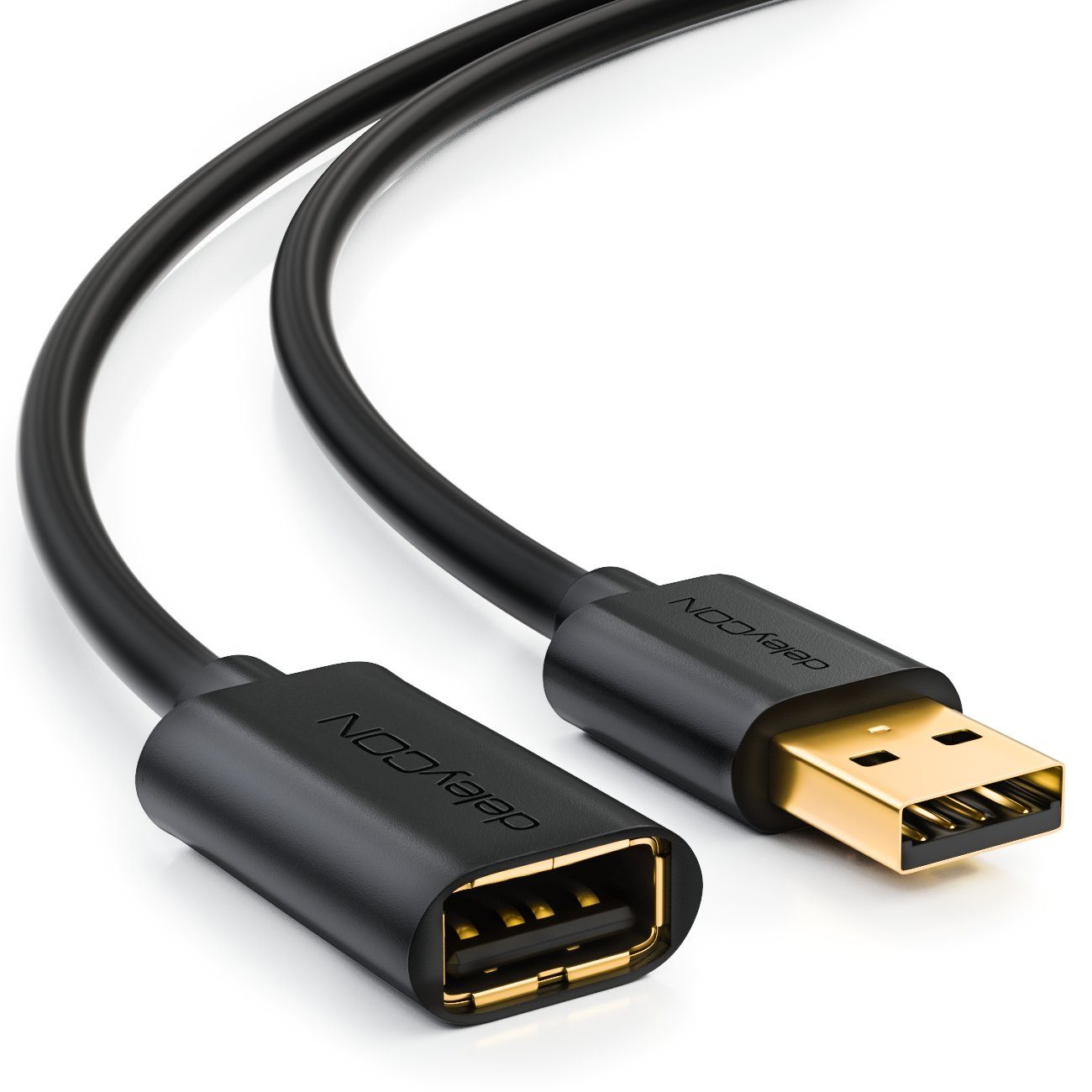 deleyCON 1m USB 2.0 Verlängerungskabel USB A-Stecker zu USB A-Buchse USB-Kabel
