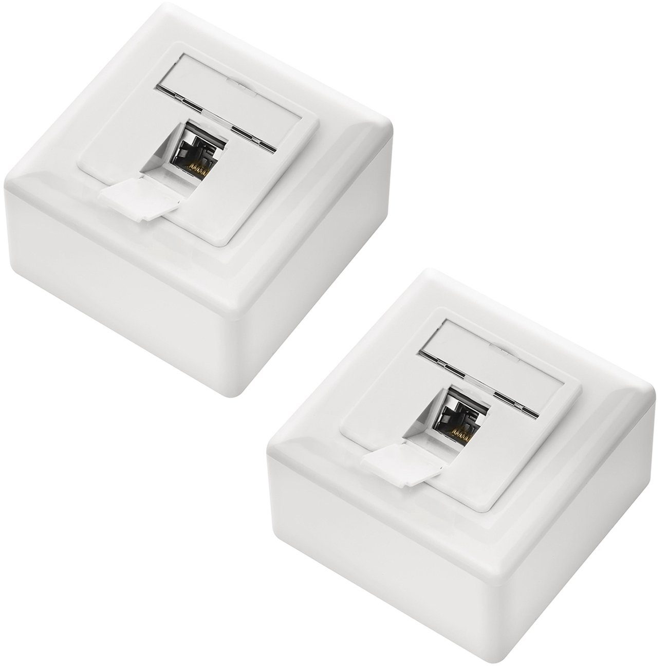 deleyCON 2x CAT6a Netzwerkdose 1x RJ45 Port Geschirmt Aufputz Netzwerk-Adapter