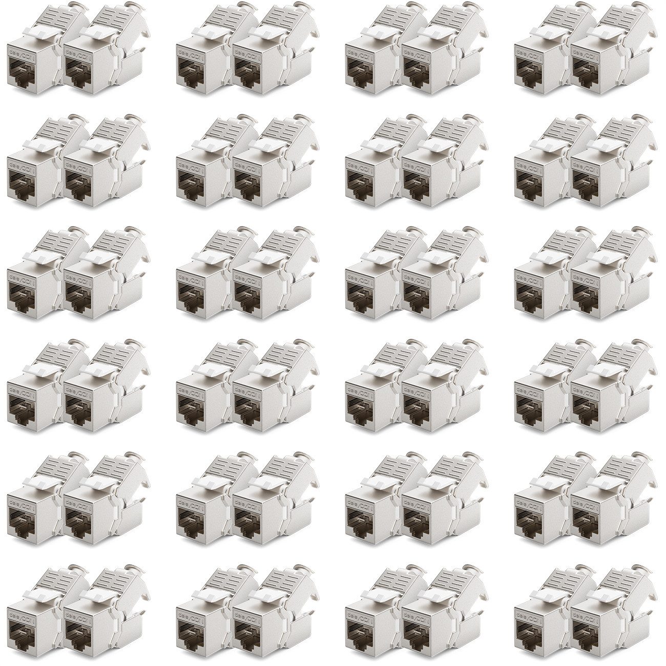 deleyCON 48x CAT6a Keystone Jack Modul STP Schirmung RJ45 Buchse Netzwerk-Adapter