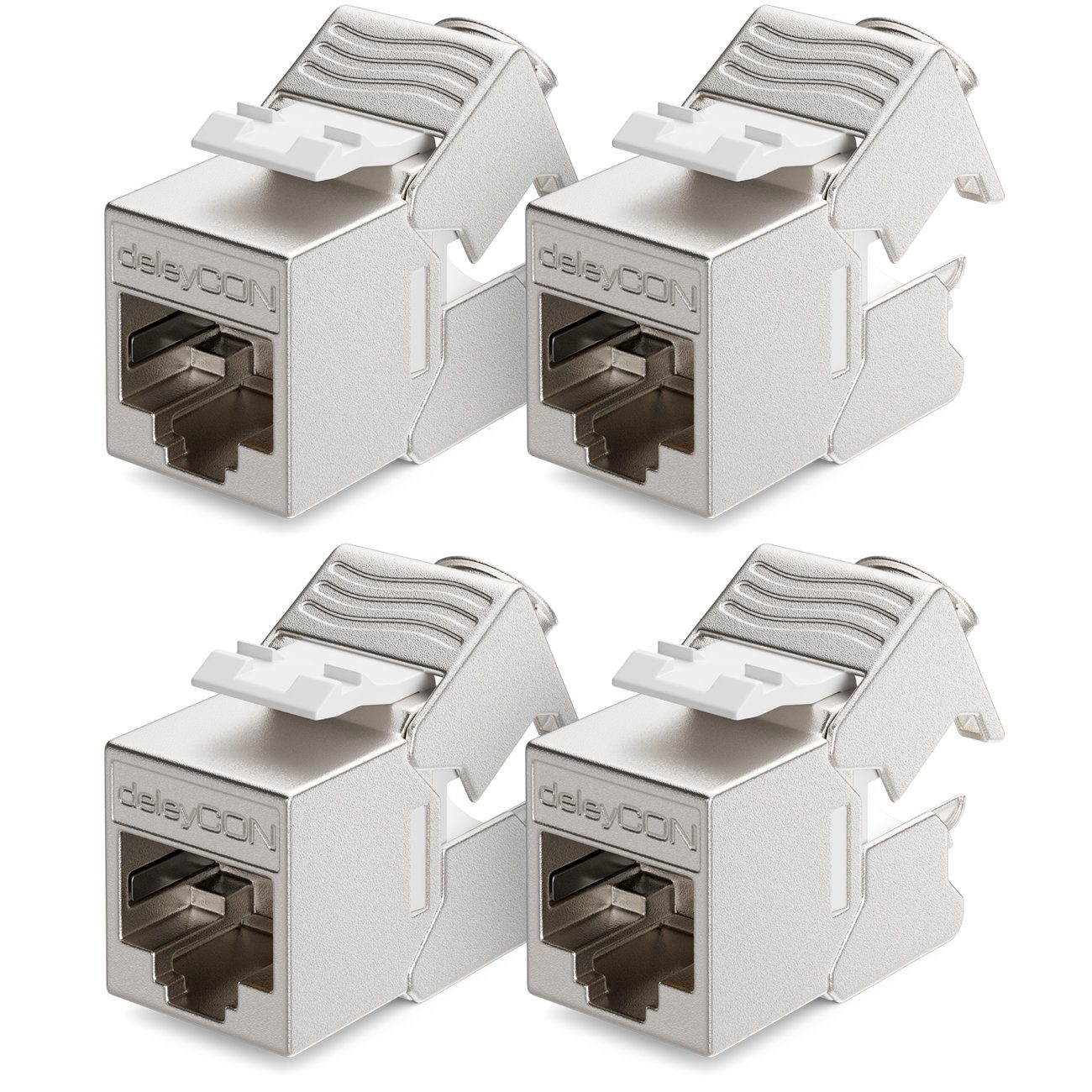 deleyCON deleyCON 4x CAT6a MINI Keystone Jack Modul STP Schirmung RJ45 Buchse Netzwerk-Adapter