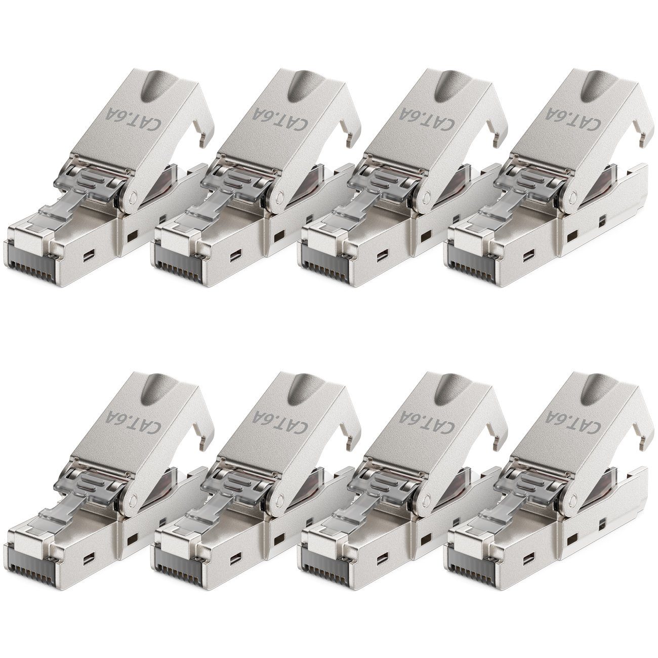 deleyCON 8x CAT6a Werkzeugloser RJ45 Netzwerkstecker 10Gbit/s Stecker Netzwerk-Adapter