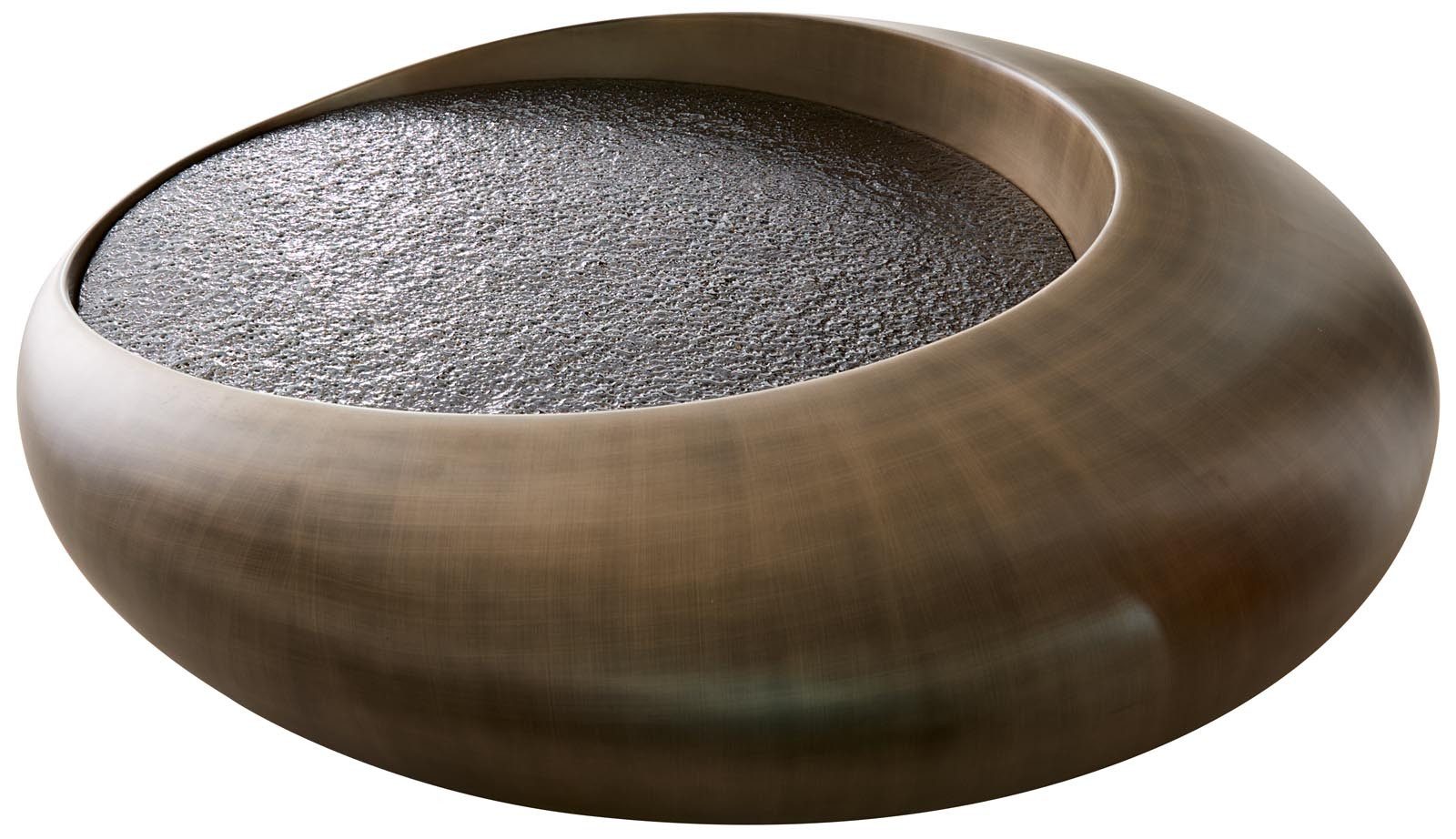 Entdecke den Couchtisch Blaise, eine harmonische Verbindung aus stilvollem Design und praktischer Funktionalität. Der runde Tisch besteht aus robuster Glasfaser und beeindruckt durch seine aufwendige Metallic Gold-Lackierung, die einen einzigartigen gebürsteten Look erzeugt. Dieses besondere Finish verleiht dem Tisch eine luxuriöse Ausstrahlung und macht ihn zum Mittelpunkt deines Wohnzimmers.