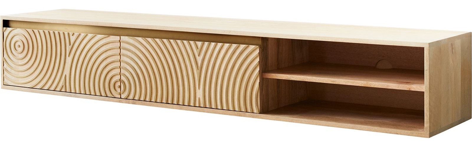 Mit einer Montage an der Wand wirkt das Lowboard fast schwerelos schwebend. Staubsaugerroboter können problemlos unter dem Möbel hindurchfahren.