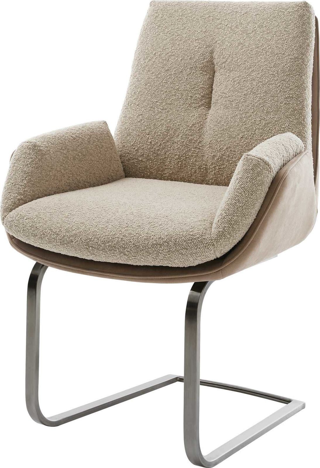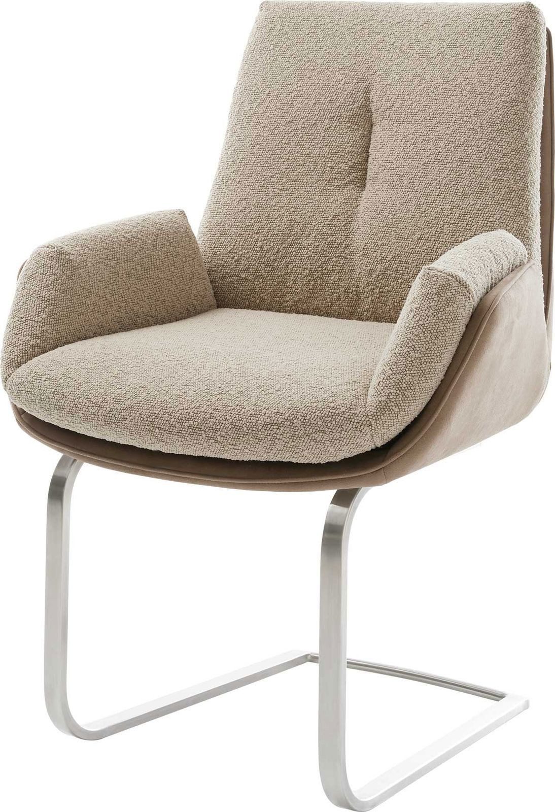 Ein außergewöhnlicher Materialmix aus Mikrofaser an der Außen- und Strukturstoff in Bouclé Optik an der Innenseite schenkt dem Esszimmerstuhl einen außergewöhnlichen Look. Ob als Einzelstück oder als Sitzgruppe - die Verwendung von zwei Materialien macht ihn zum Design-Highlight.