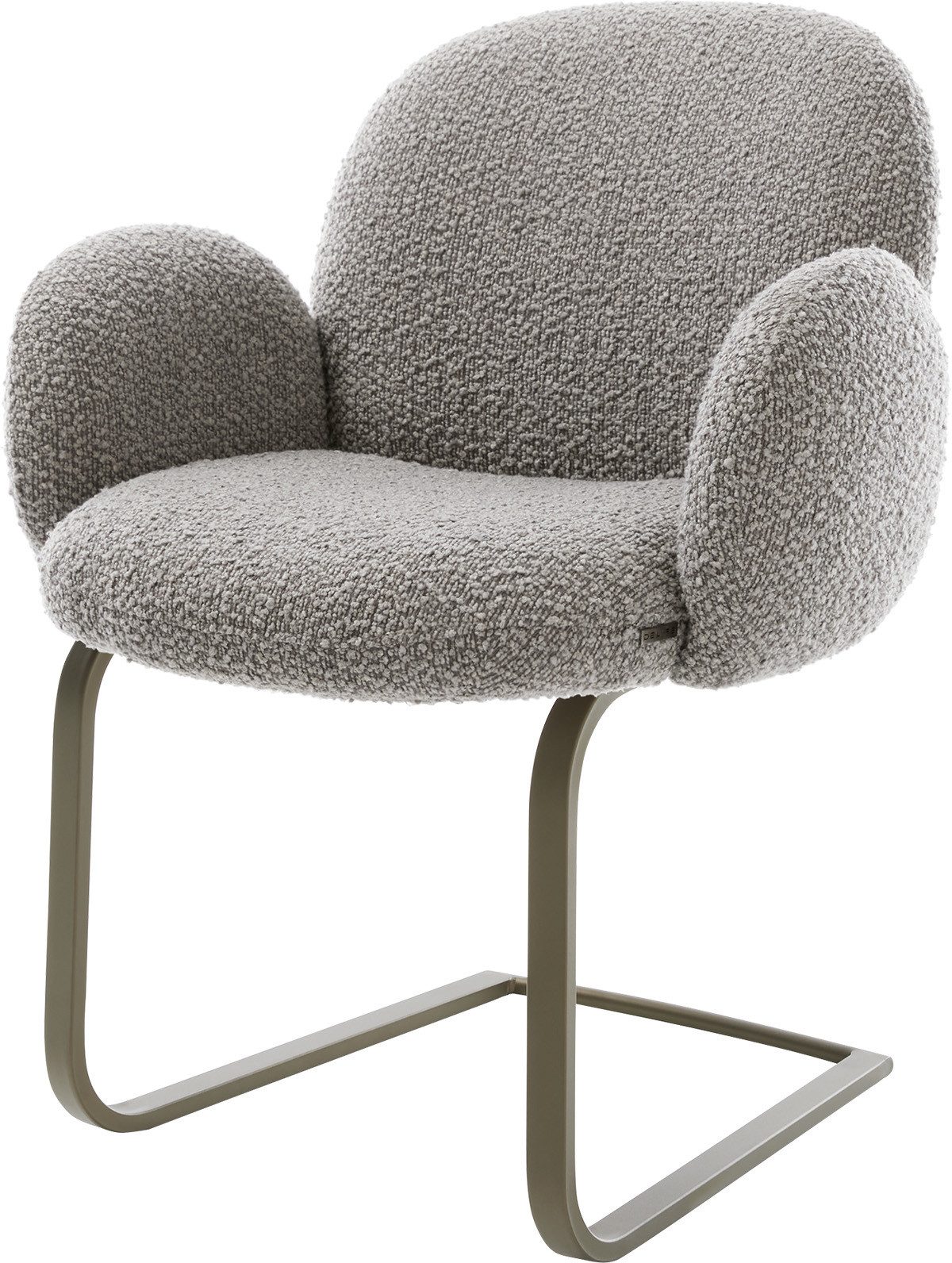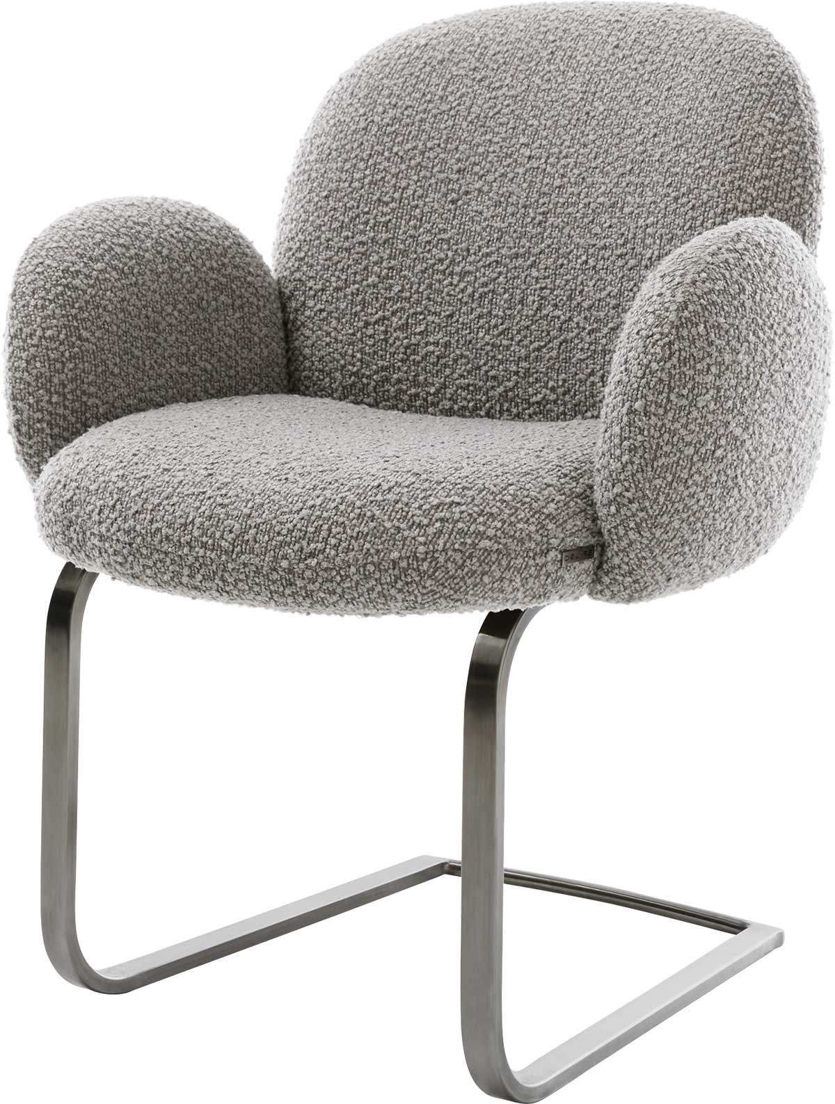 Materialen: Sitzschale: Bouclé (100% Polyester), Stuhlgestell: pulverbeschichtetes Metall