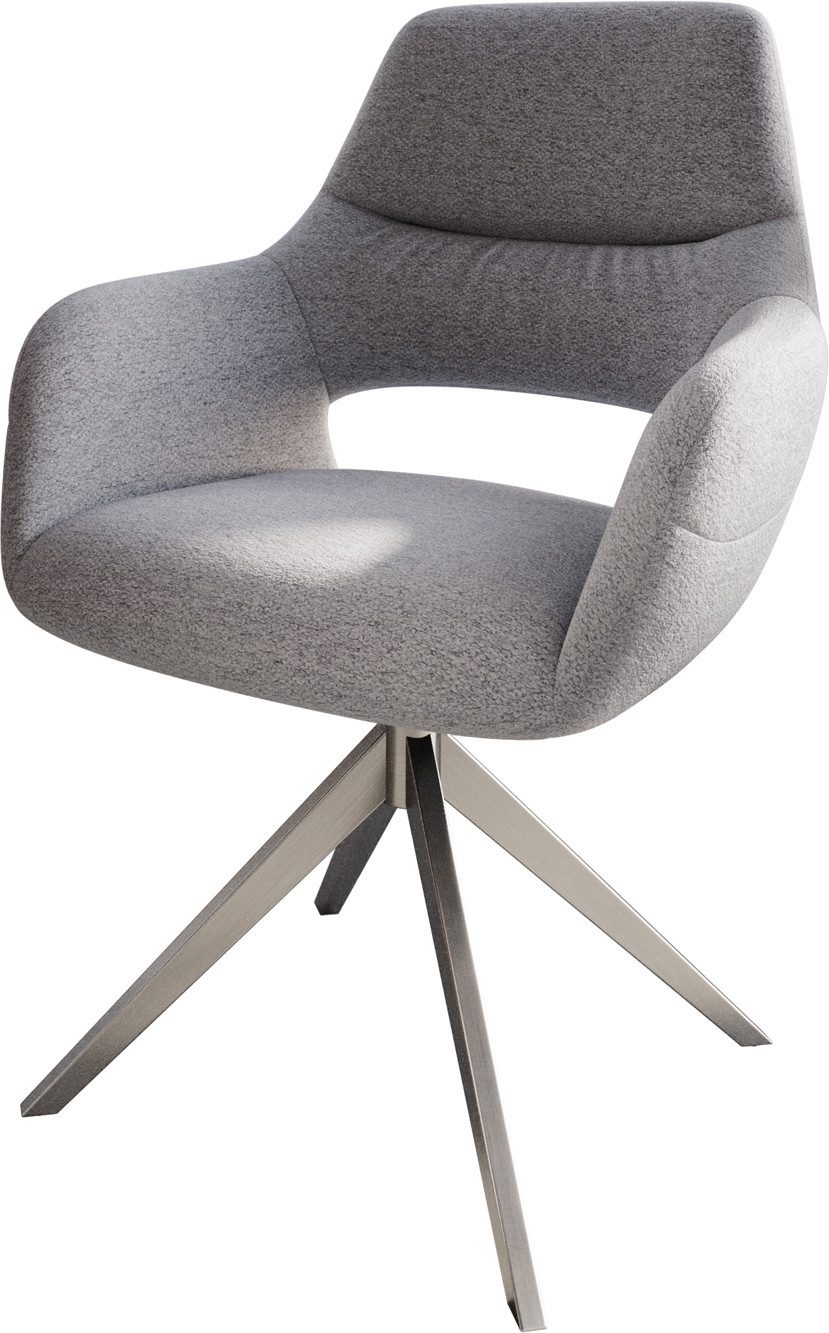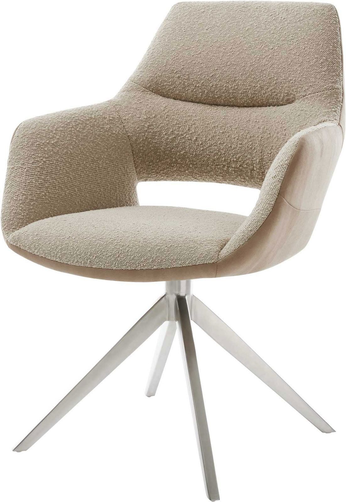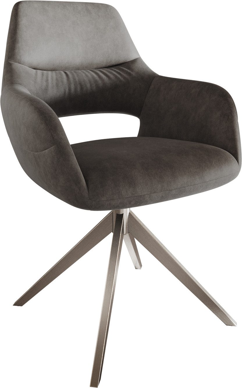 Der Esszimmerstuhl Yago-Flex zieht mit seiner durchbrochenen Rückenlehne und der feinen Ziernaht alle Blicke auf sich. Sanft auslaufende Armlehnen runden das elegante Design stilvoll ab.