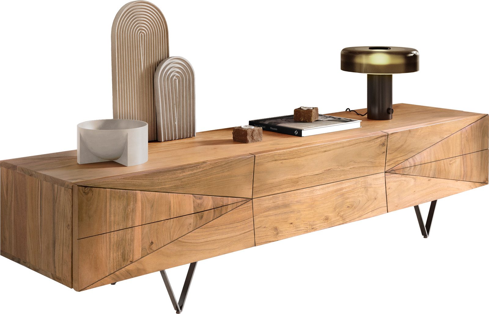 Material: Fernsehtisch: Akazienholz, Füße: Edelstahl