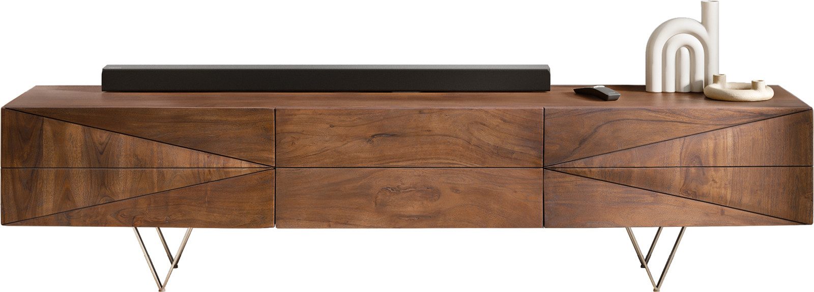Neben der ansprechenden Optik bietet Ihnen das TV-Möbel viel Stauraum an. In aufwendiger Handarbeit gefertigt, verspricht Ihnen der Akazienholz-Tisch lange währende Freude.
