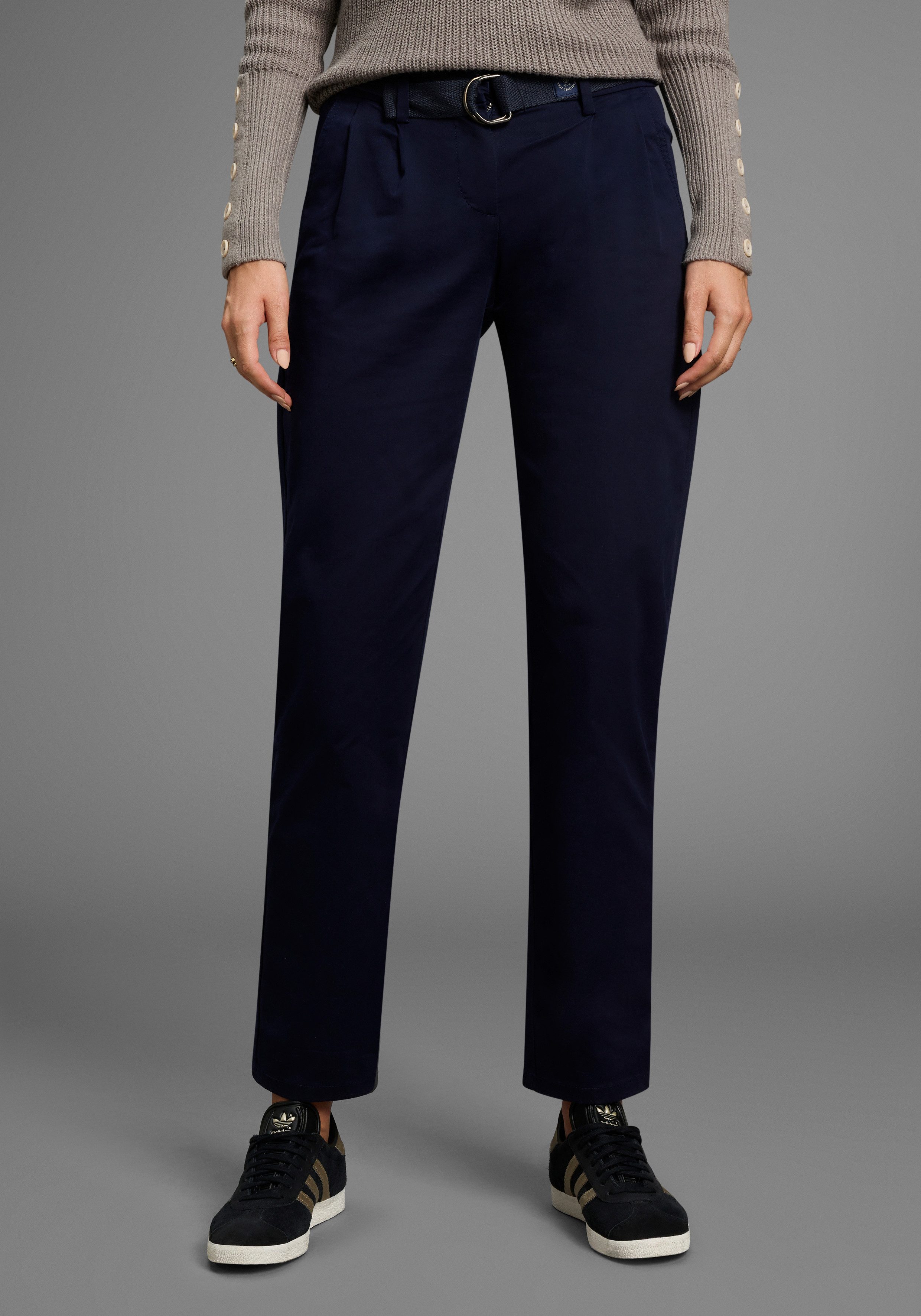 Das Baumwollstretch-Material ist pflegeleicht und auch bei langen Autofahrten oder einem ausgiebigen Stadtbummel sehr bequem.