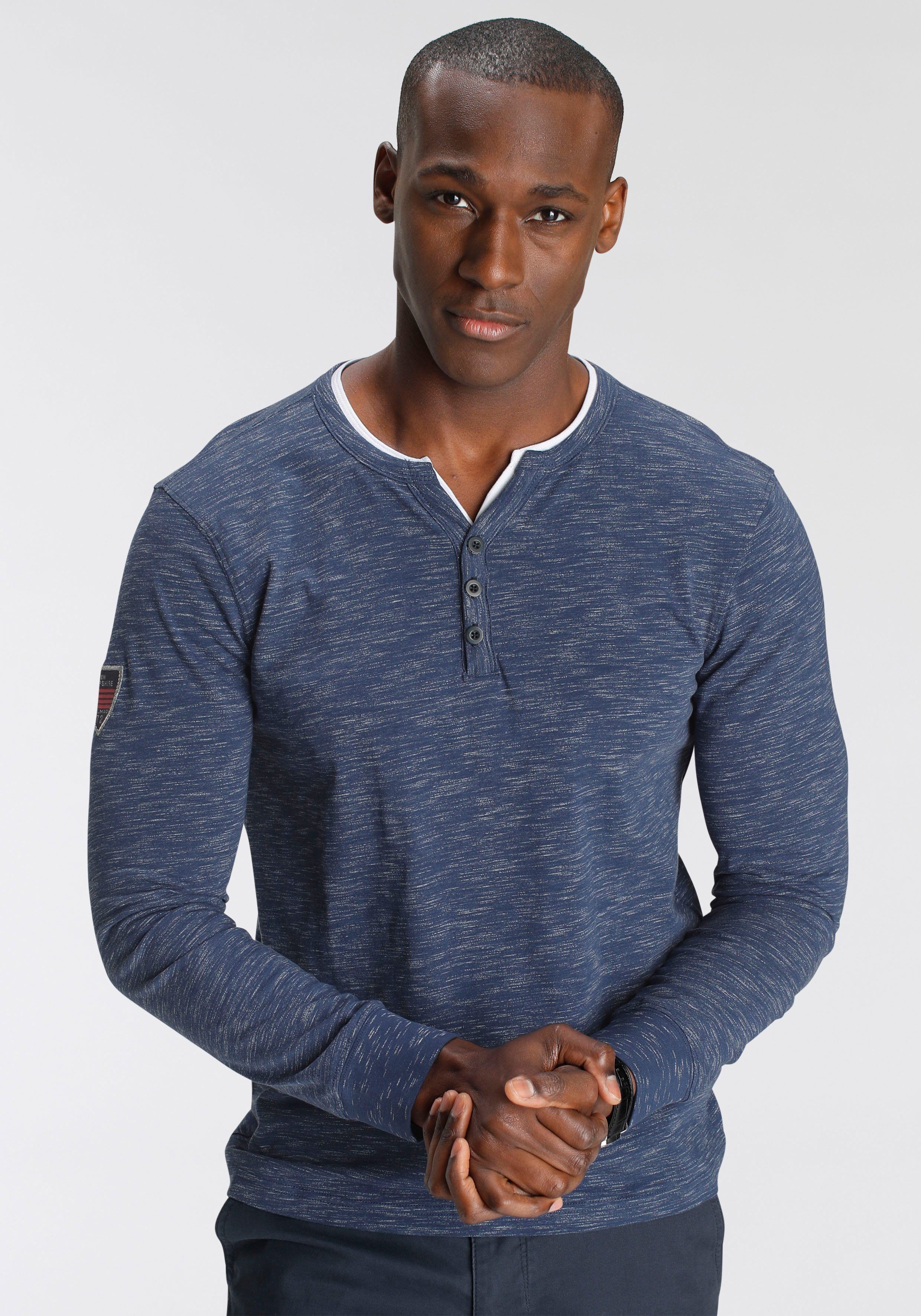 Besondere Merkmale | Langarm, melierte Optik, Henleykragen, aus Baumwollmischung |