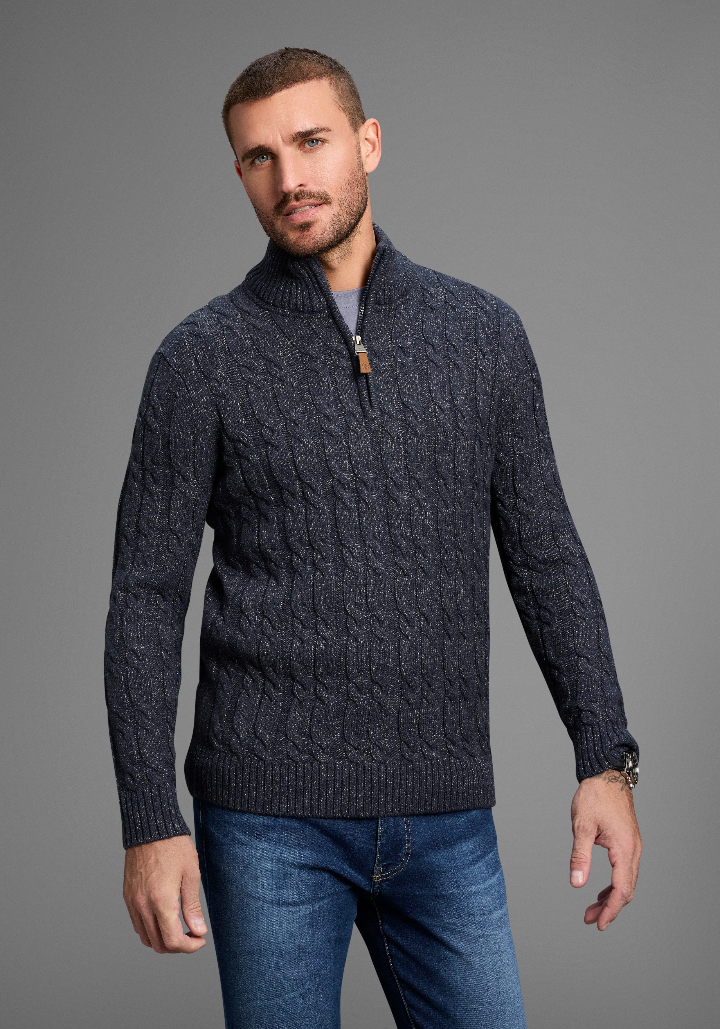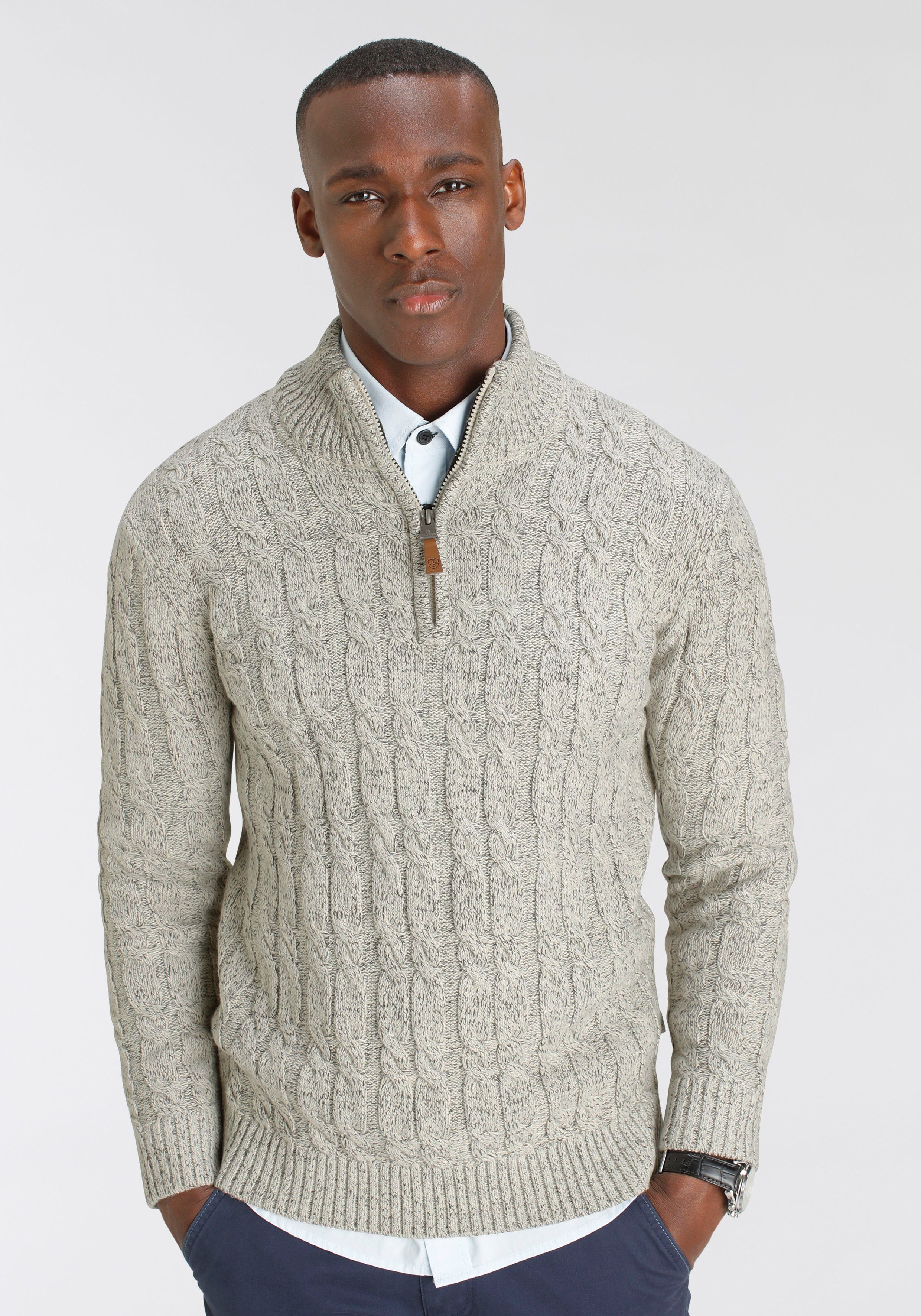 Mit dem Troyer »Bis Размер 3XL« von DELMAO lassen sich einfach neue Styles zusammenstellen. Er wirkt mit dem Badge dynamisch und trendig. Die langen Ärmel enden in einem Rippstrickbündchen, das für guten Sitz sorgt.